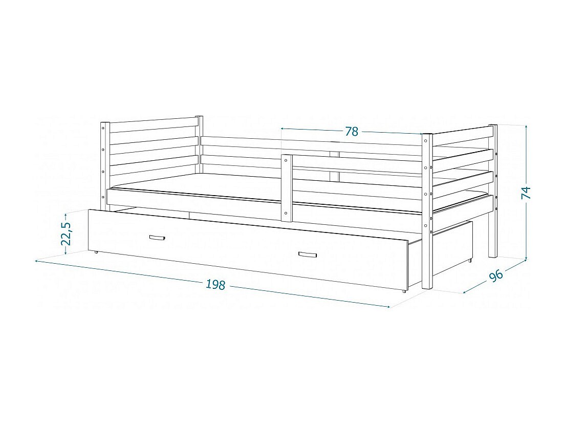 Lit Enfant Milo 90x190 Gris - rose Livré avec sommiers, tiroir et matelas en mousse de 7cm