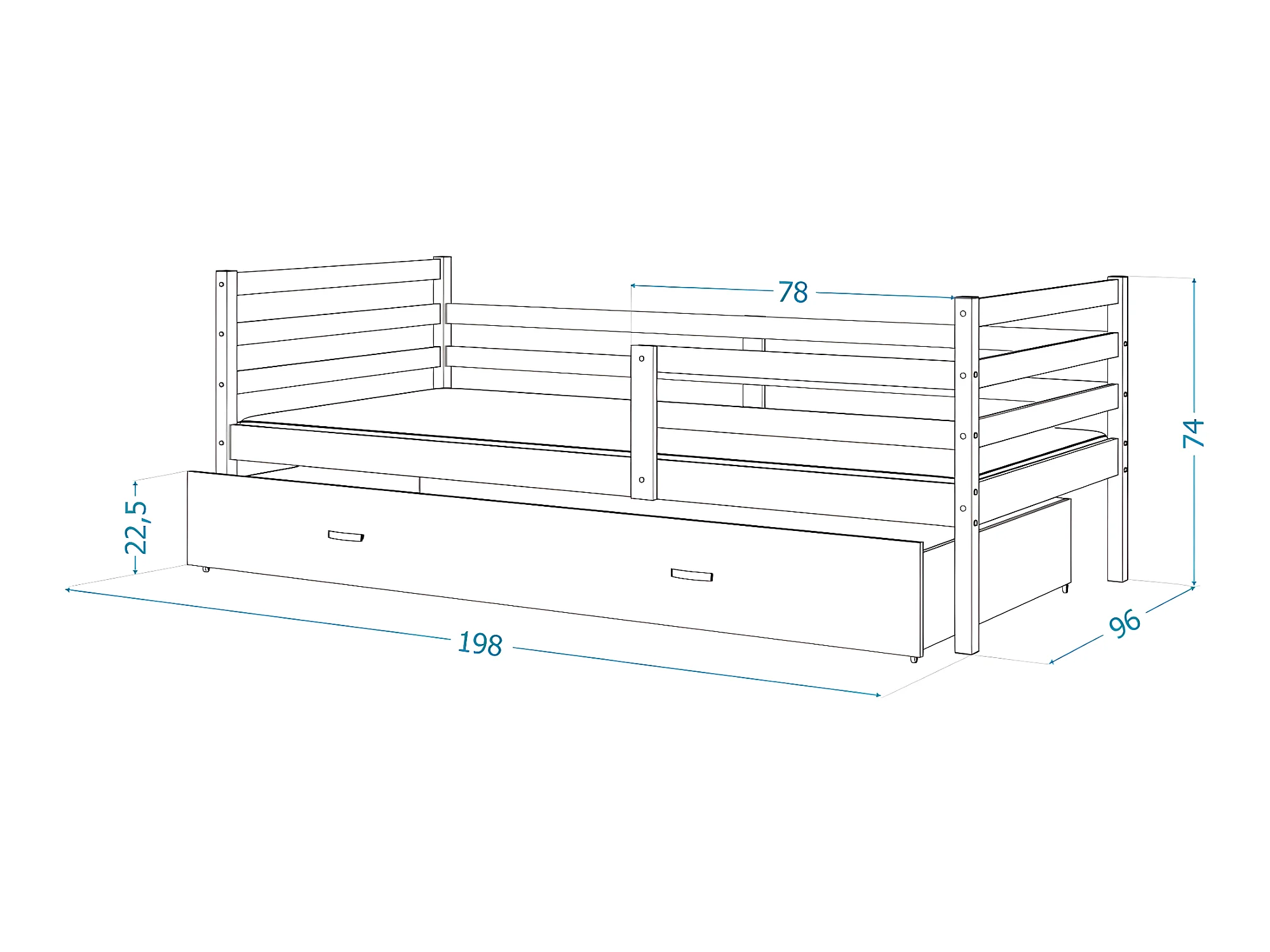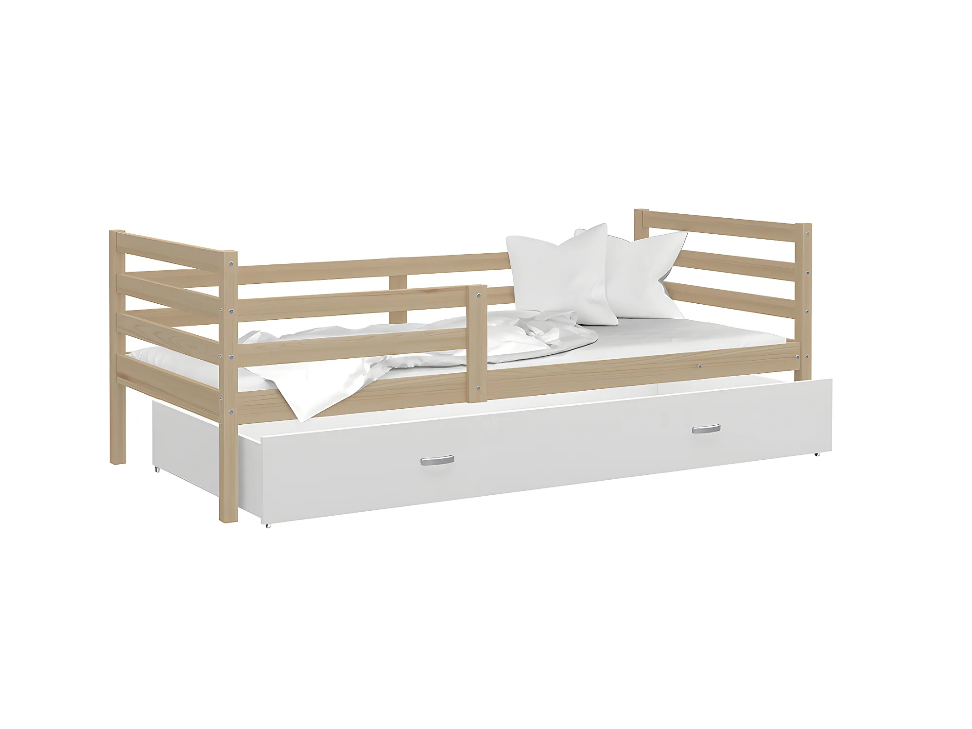 Lit Enfant Milo 90x190 Pin - blanc Livré avec sommiers, tiroir et matelas en mousse de 7cm