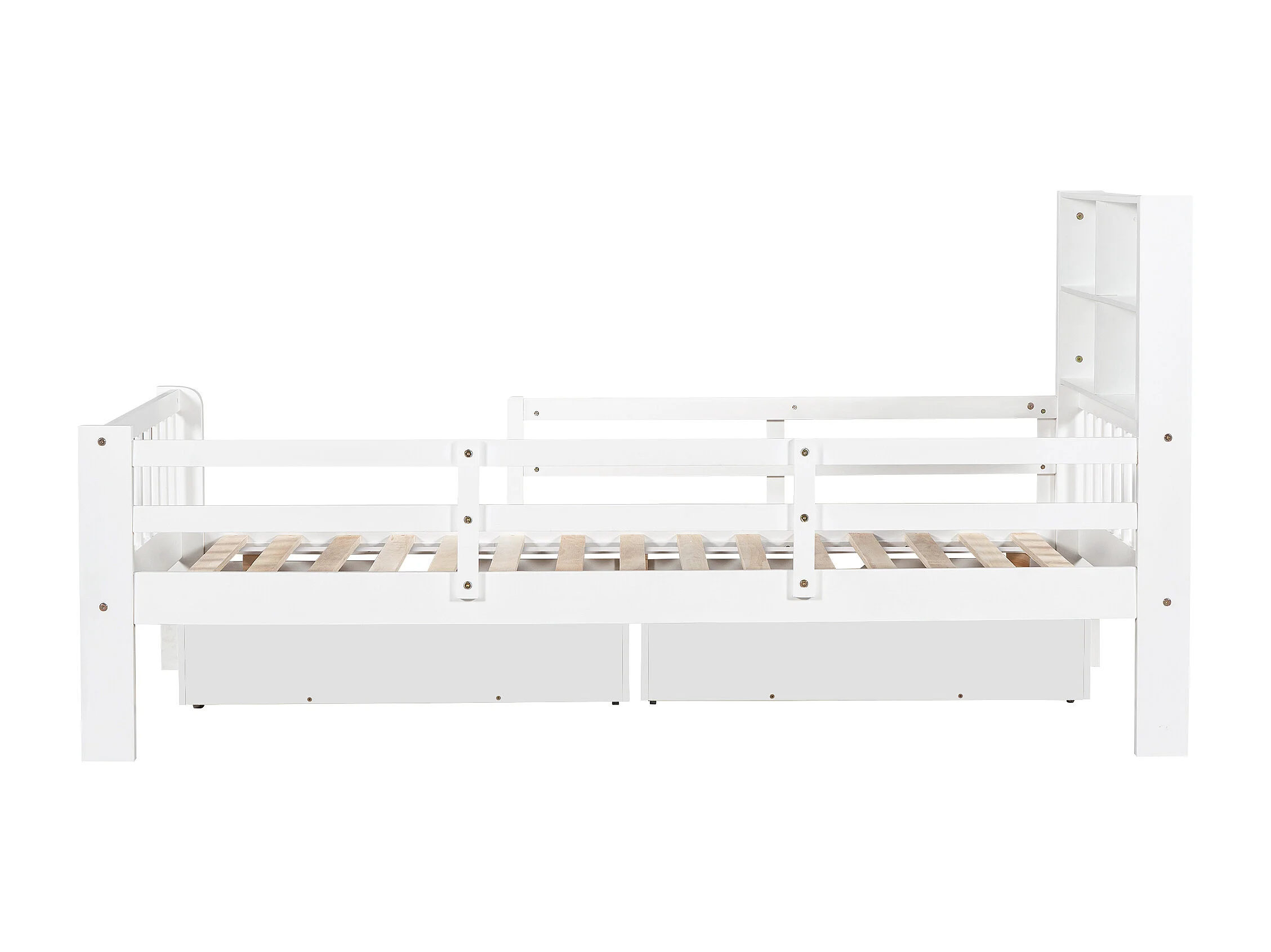 Lit enfant multifonction 90×200 blanc avec tiroirs et tableau, structure bois, sans matelas