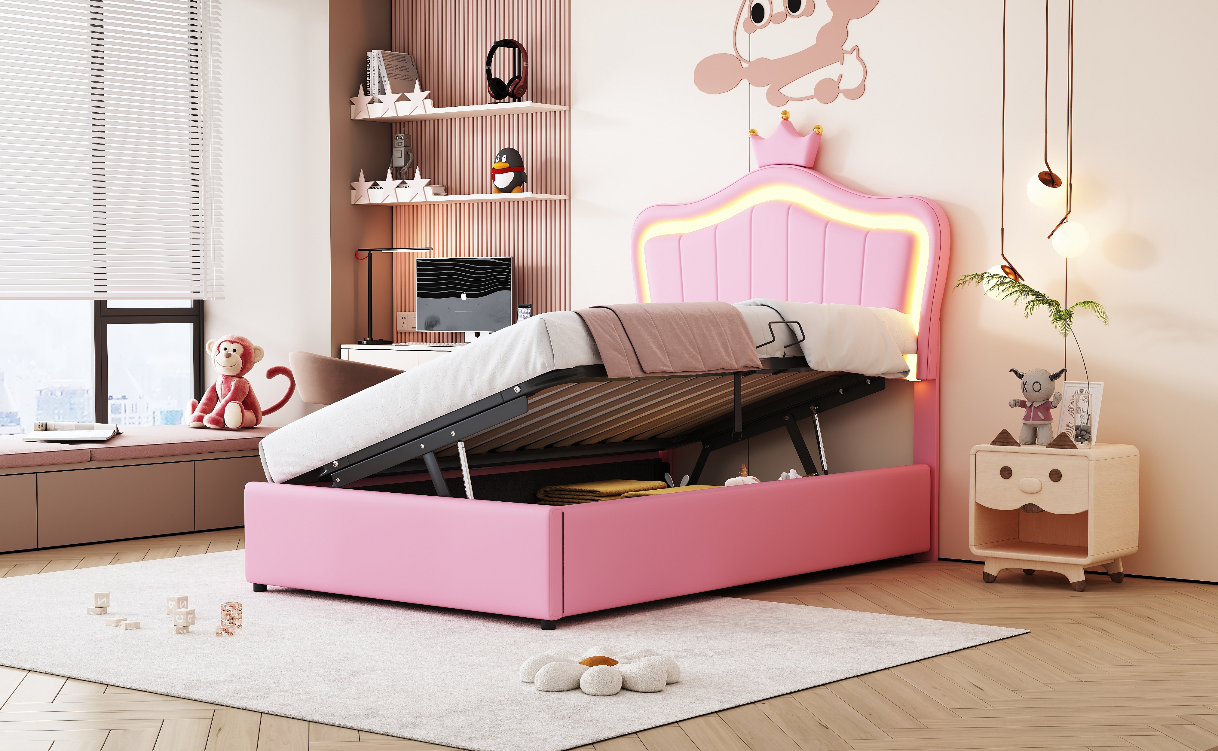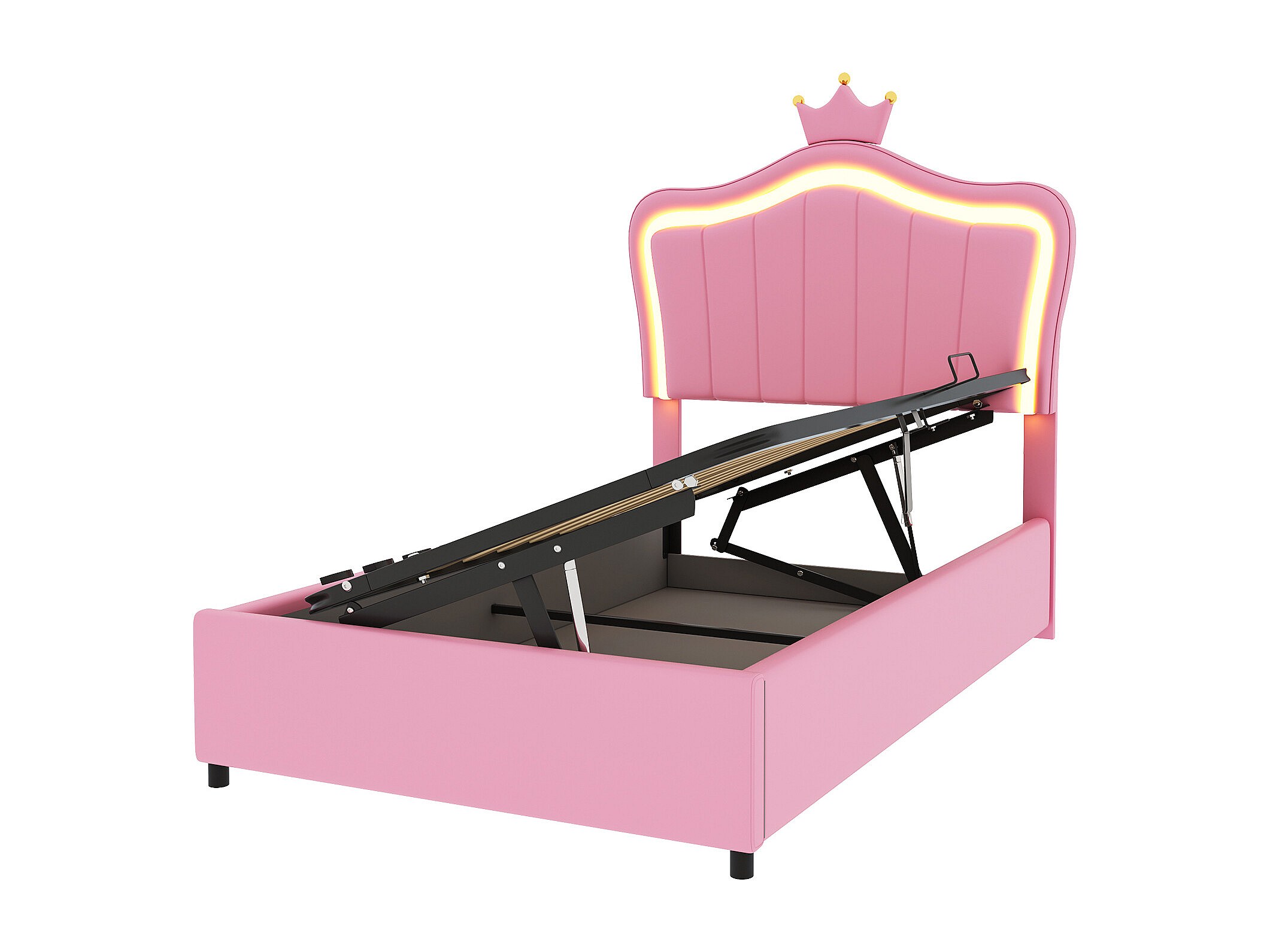 Lit enfant rembourré 90x200 cm, avec éclairage LED, design en forme de coquillage et tête de lit réglable