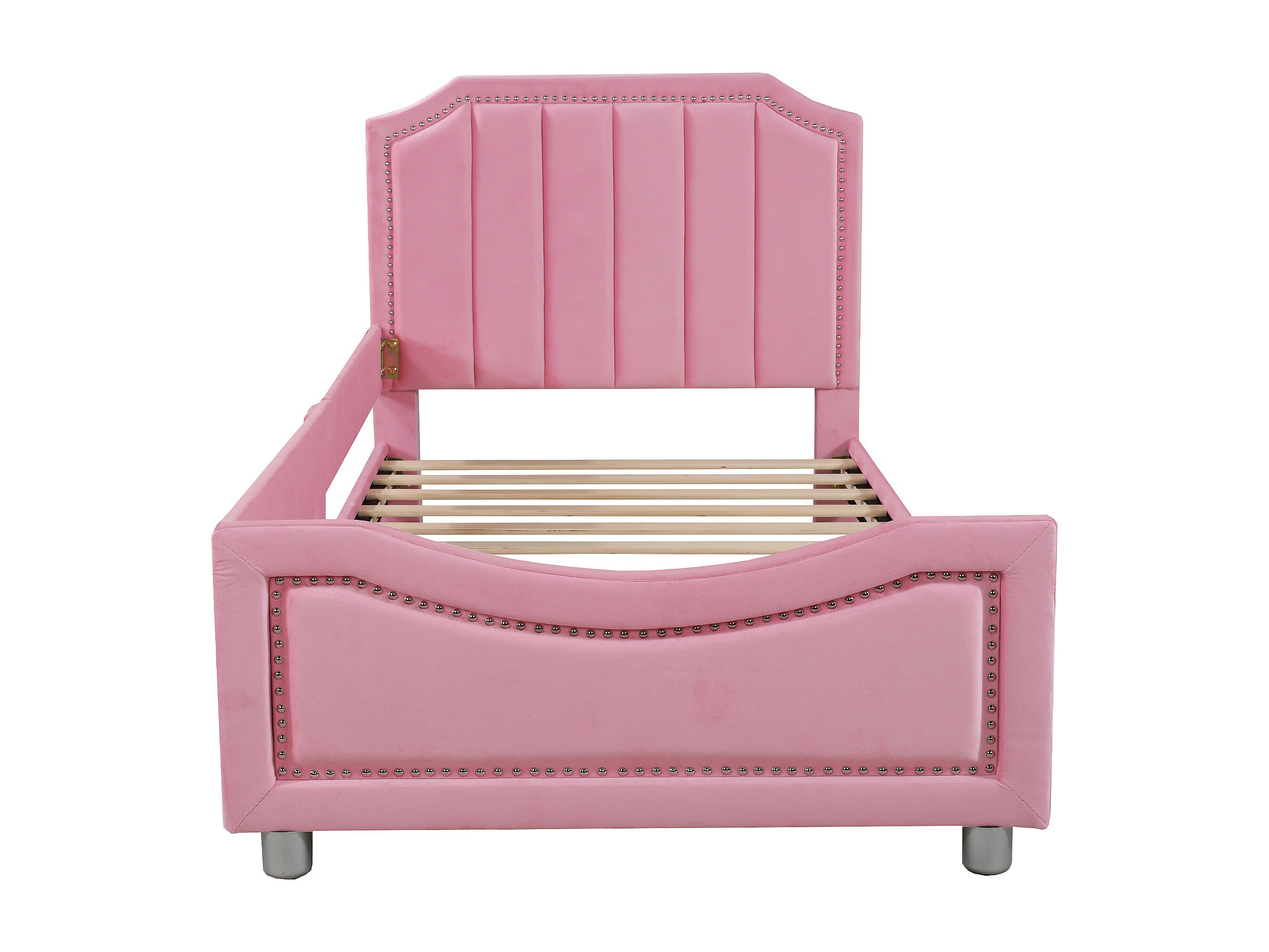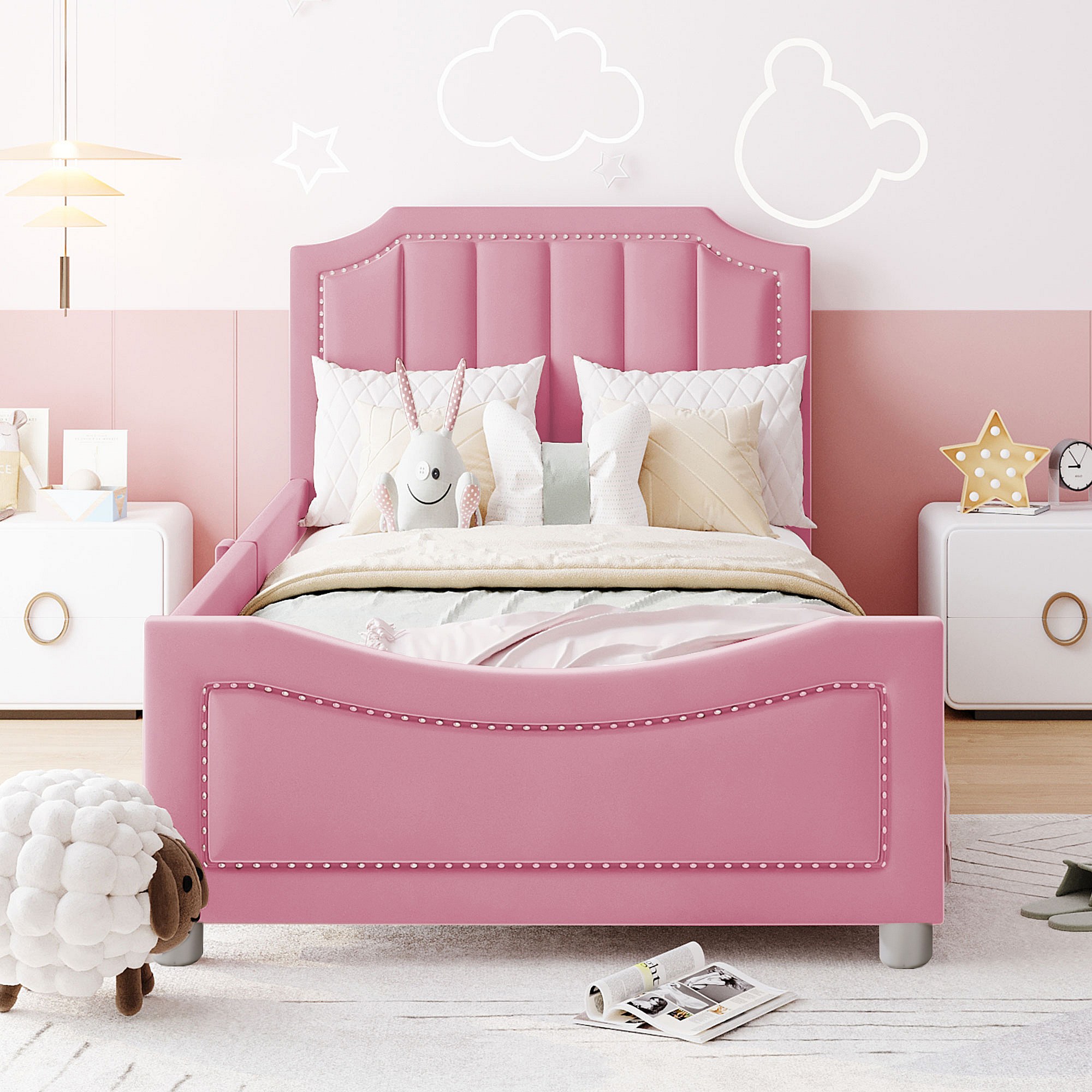 Lit enfant rembourré 90x200 cm, canapé-lit flanelle, dossier et accoudoirs, lit parent-enfant, multifonction, rose