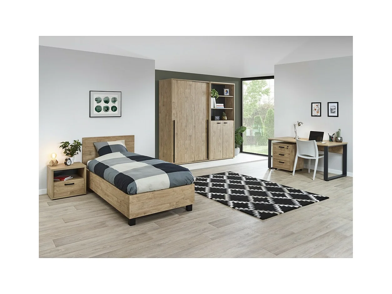 Lit enfant robuste 120x200 coloris chêne doré collection MEGEVE