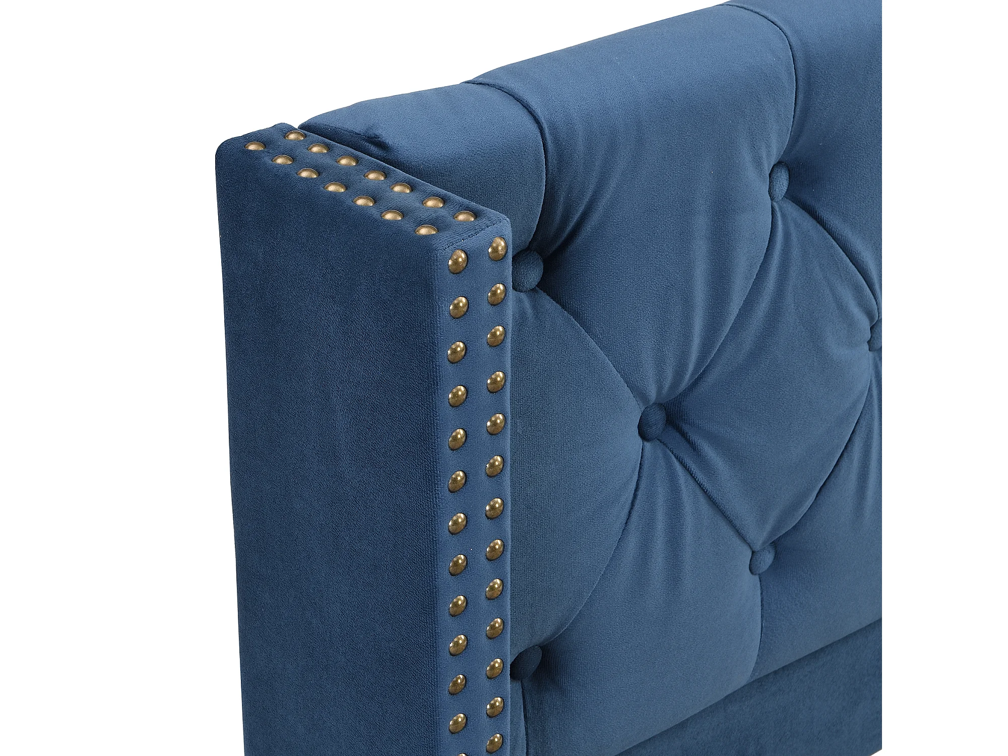 Lit enfant 90x200 cm avec sommier - tête de lit capitonnée - cadre de lit en bois - velours bleu (sans matelas)