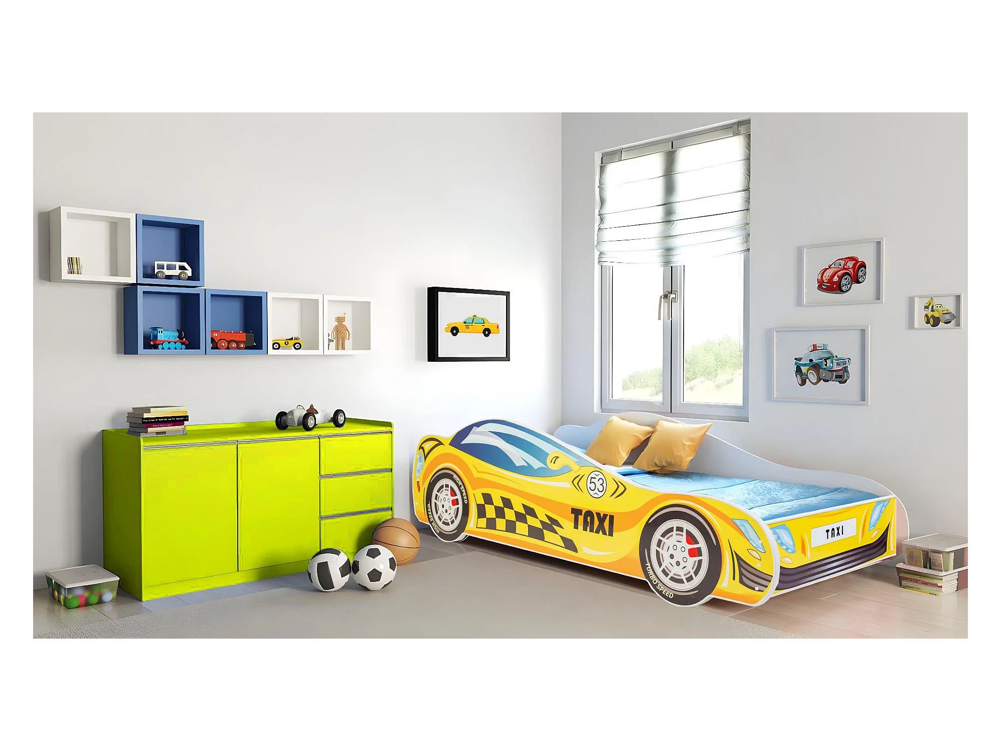 Lit enfant mixte garçons et filles Taxi avec matelas et sommier inclus - 140 cm x 70 cm
