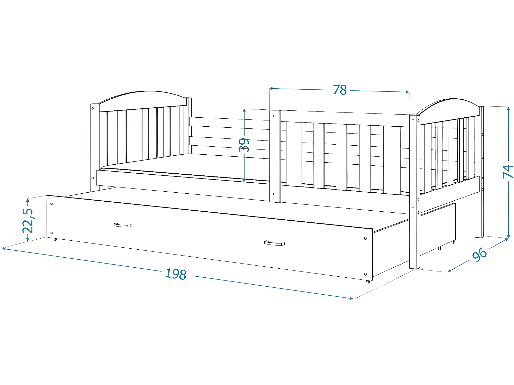 Lit Enfant Teo 90x190 Gris - blanc Livré avec sommiers, tiroir et matelas en mousse de 7cm