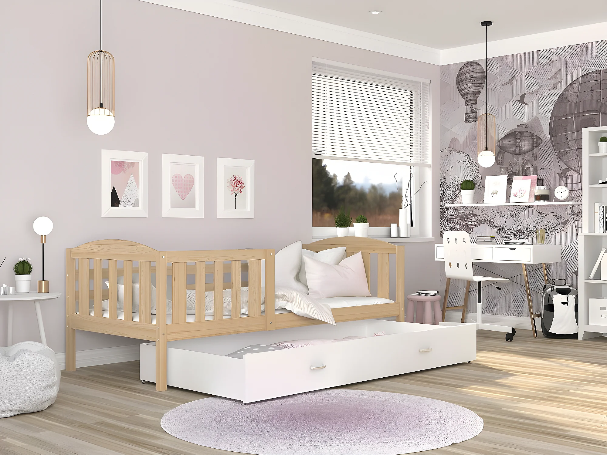 Lit Enfant Teo 90x190 Pin - blanc Livré avec sommiers, tiroir et matelas en mousse de 7cm