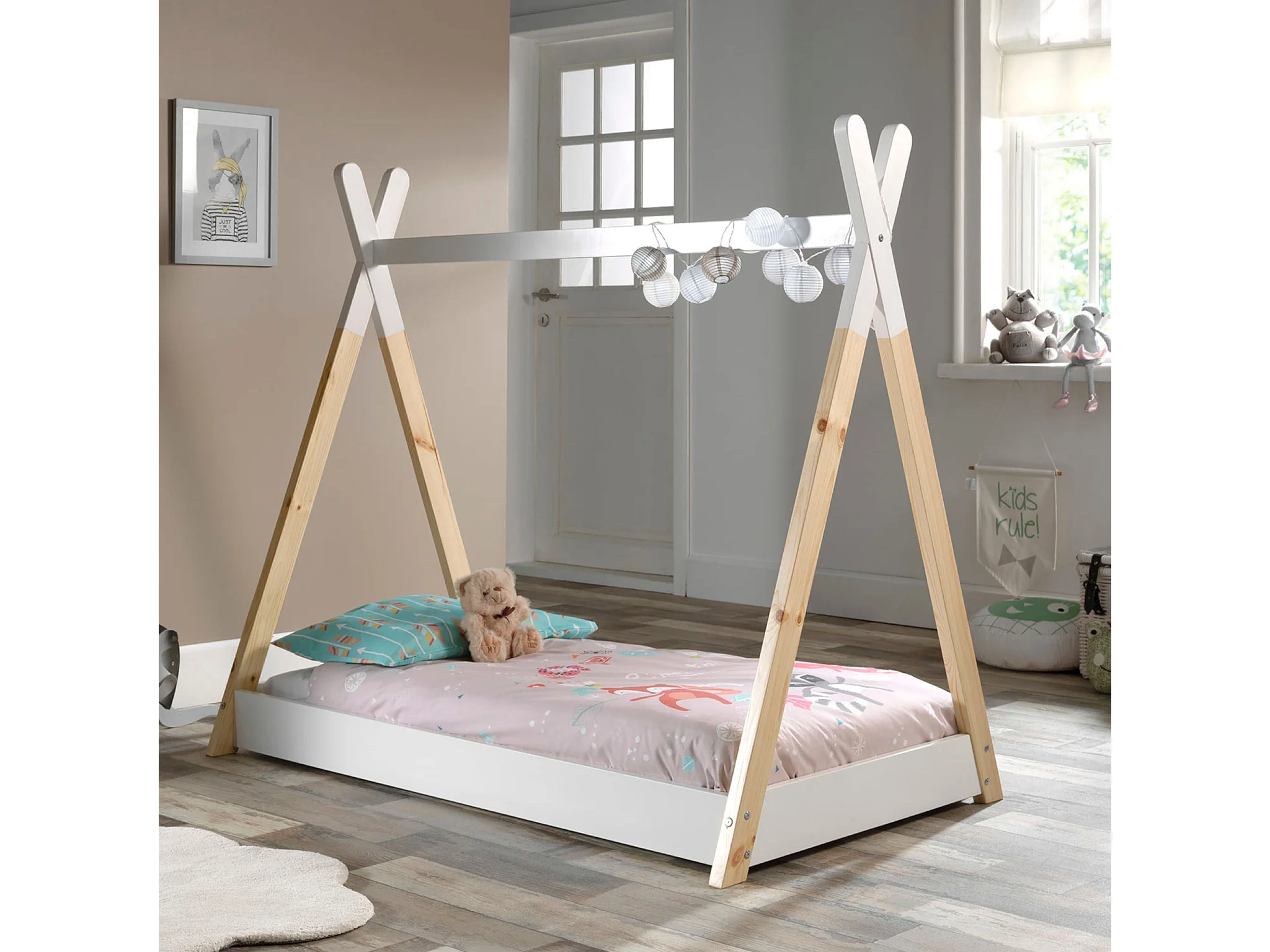 Lit enfant tipi inspiration Montessori en bois blanc 90x200 - Terre de Nuit