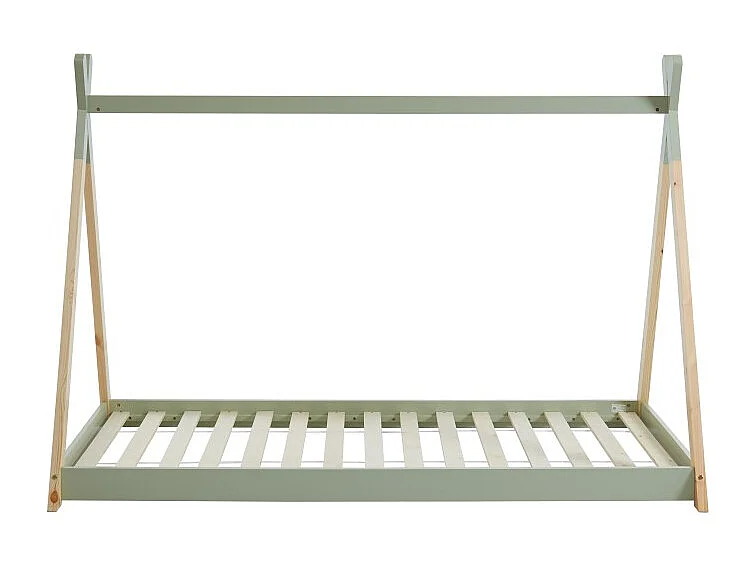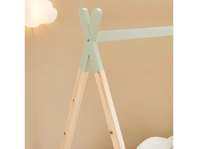 Lit enfant tipi TINY vert et pin massif 90x190 sommier inclus