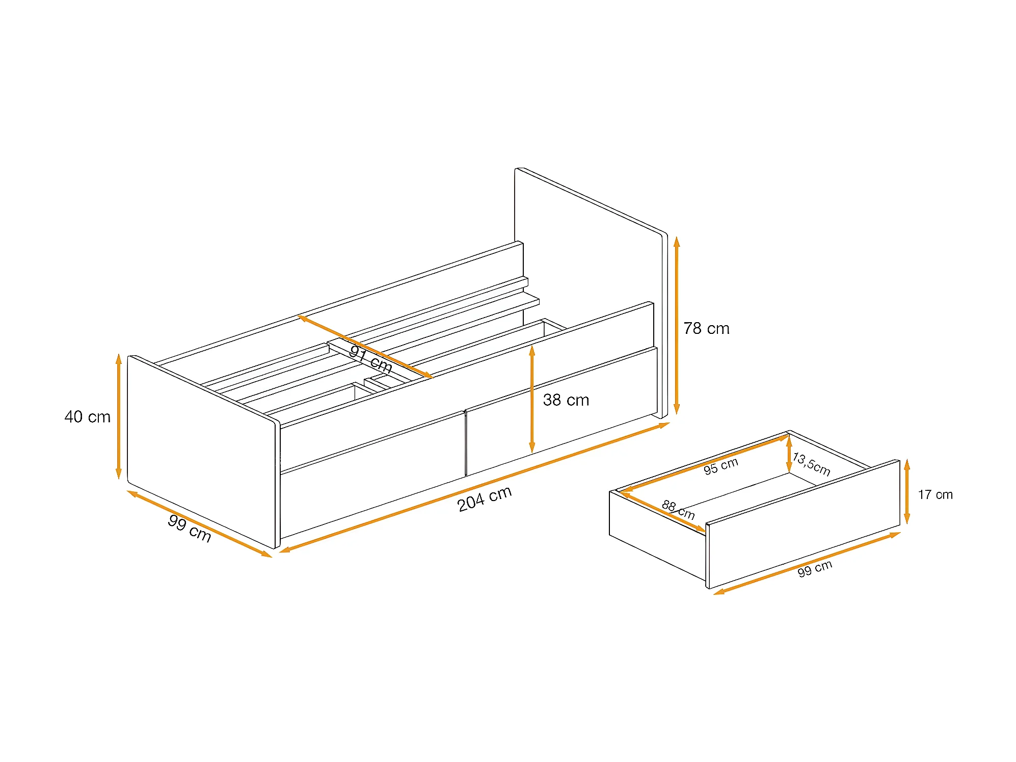Lit Enfant & Tiroir "Vivero" 90x200cm Gris & Naturel