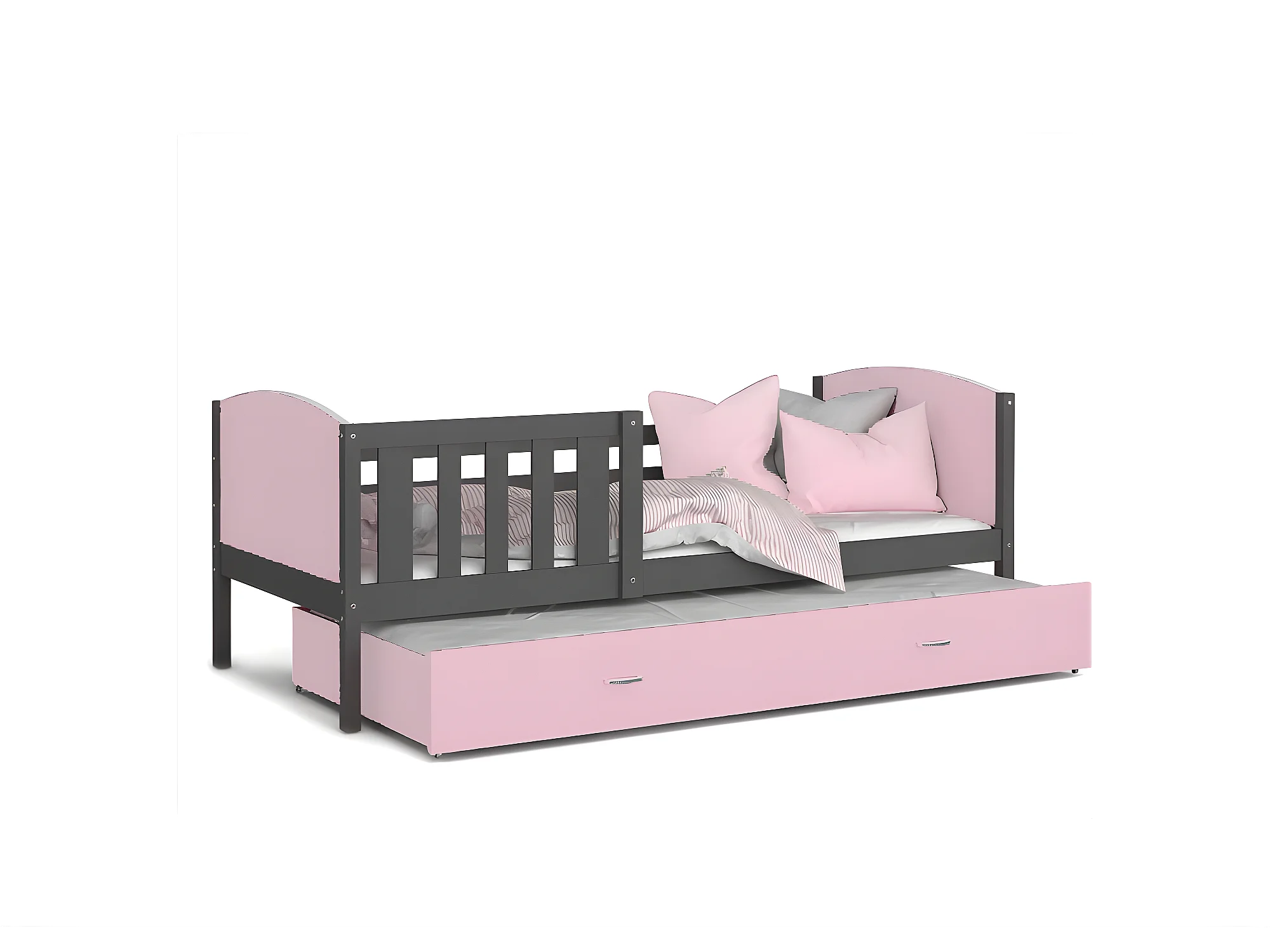 Lit Enfant Tomy 90x190 Gris - rose Livré avec sommiers, tiroir et matelas en mousse de 7cm