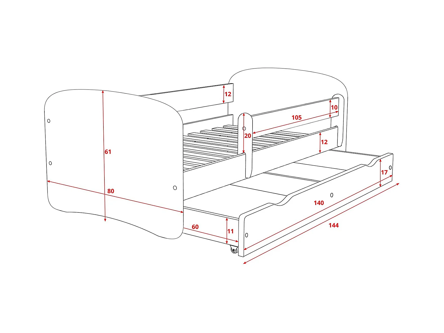 Lit enfant vert petit éléphant avec sommiers et barrière de sécurité amovible Drimy-Matelas mousse-80x180