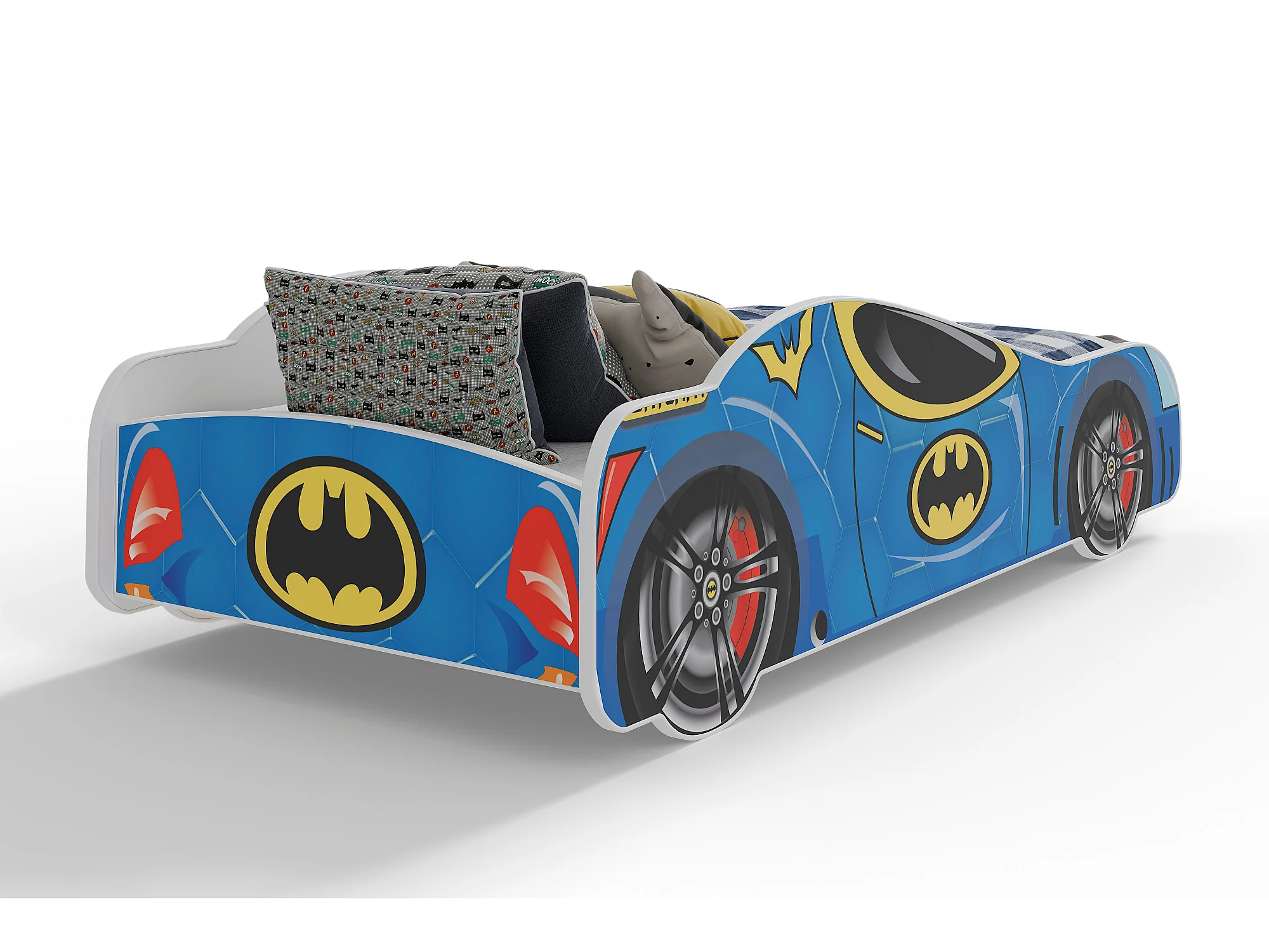 Lit enfant pour garçon voiture de Batman Batcar, Batmobile - bleu avec matelas et sommier inclus - 140 cm x 70 cm