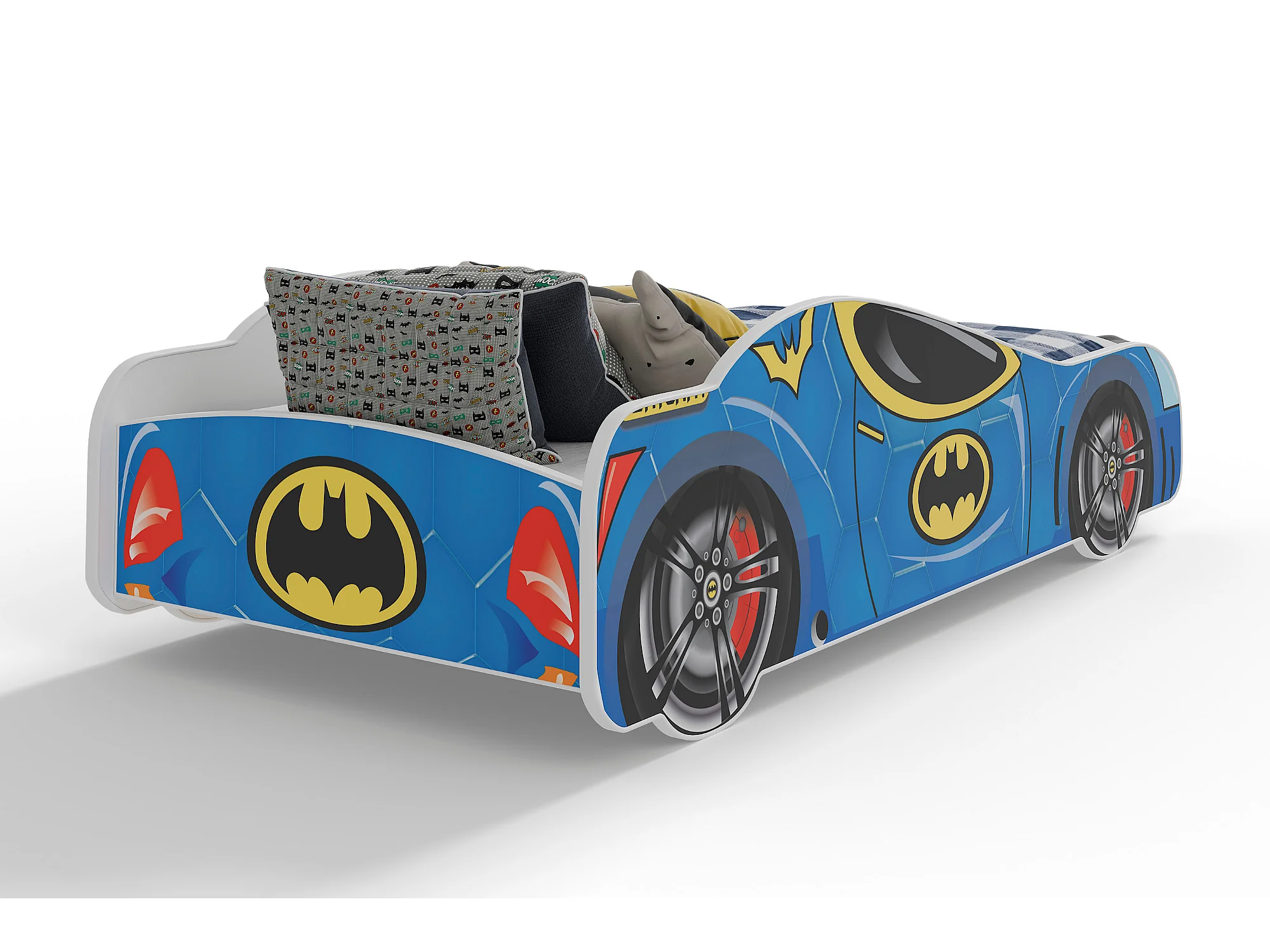 Lit enfant pour garçon voiture de Batman Batcar, Batmobile - bleu avec matelas et sommier inclus - 160 cm x 80 cm