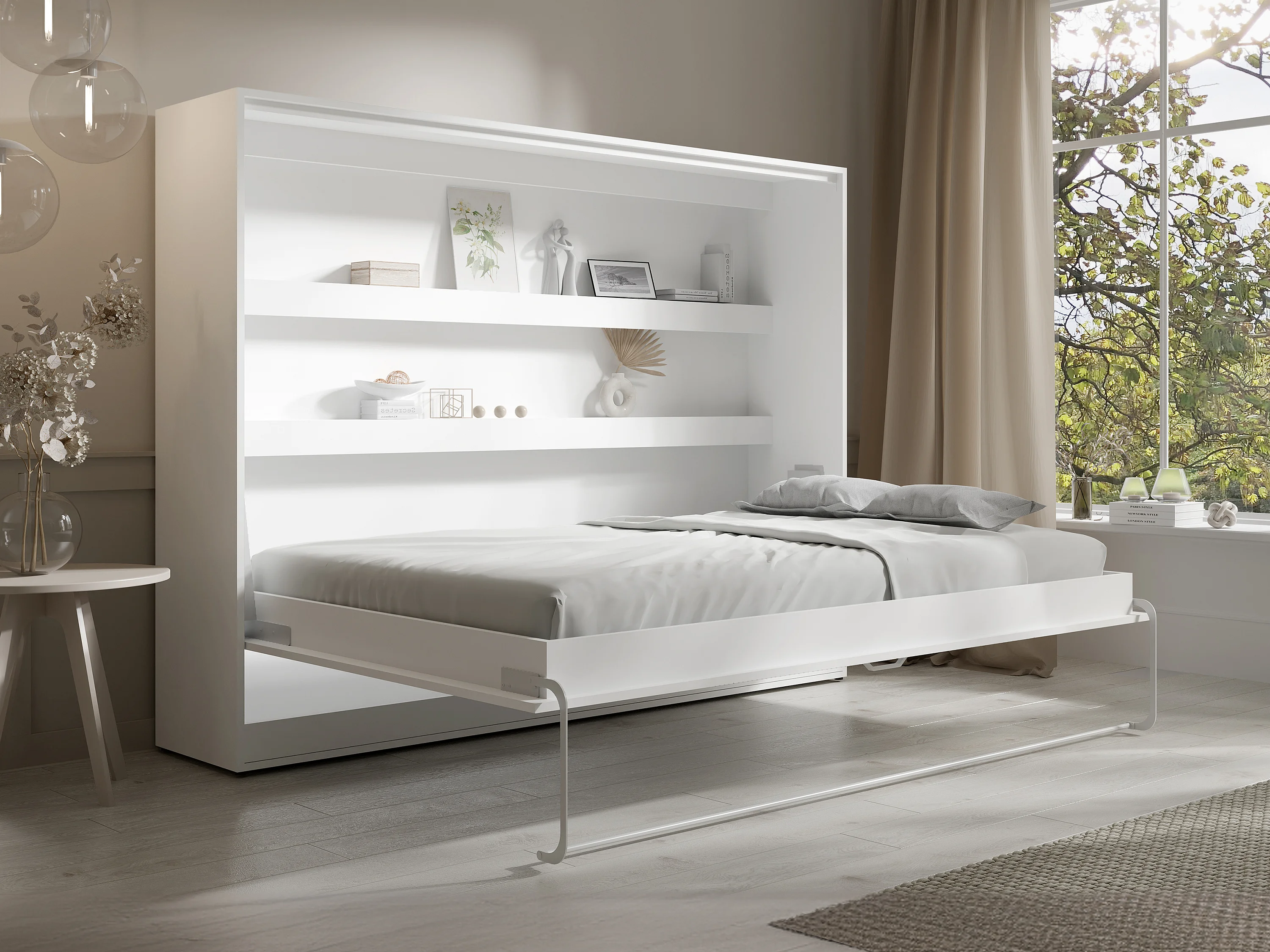Lit escamotable 140 x 200 cm - Ouverture horizontale manuelle - Avec LEDs - Blanc - RAPILI