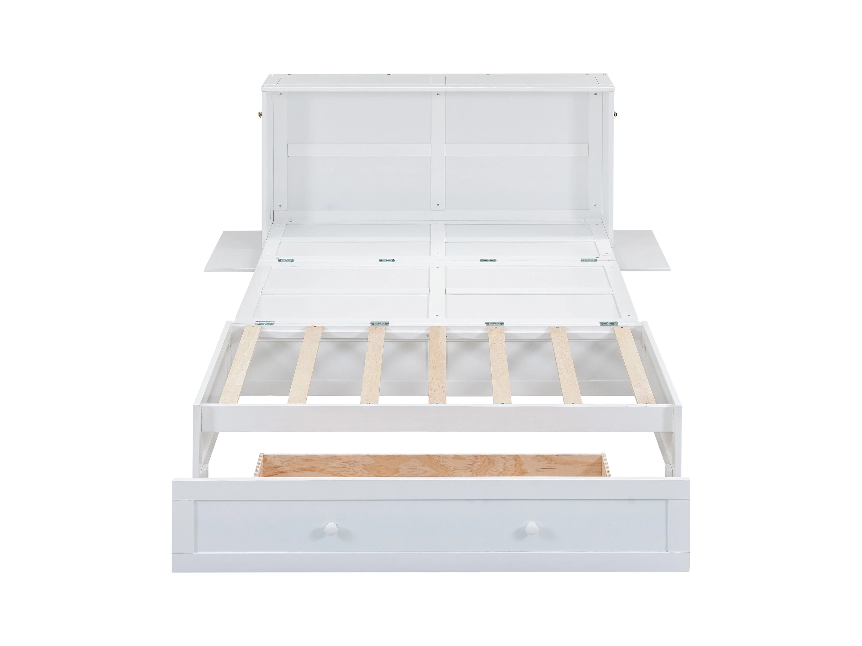 Lit escamotable 140x200 cm avec tiroirs et petit rangement latéral, lit transformable, Blanc
