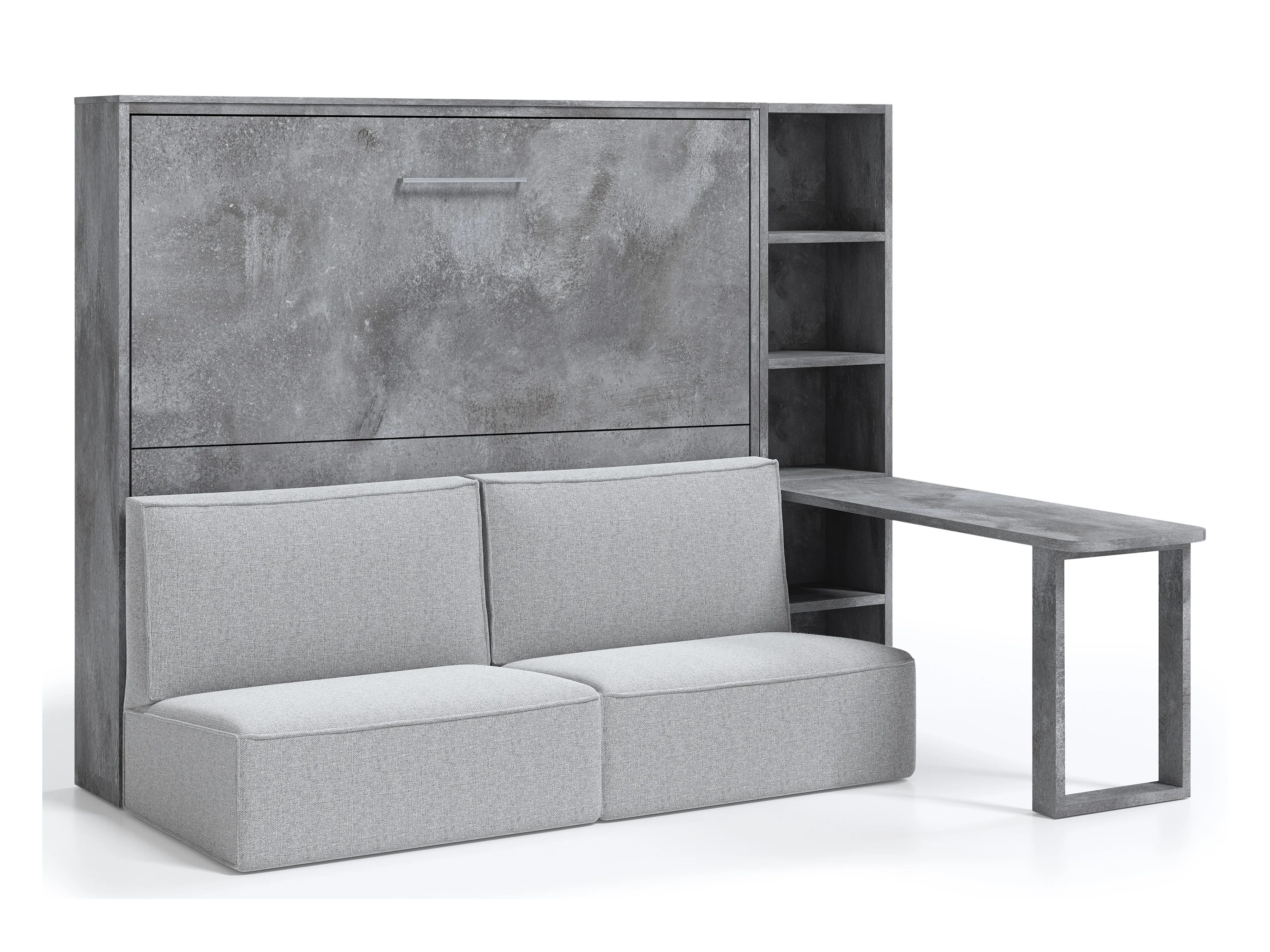 Lit escamotable 160x200 canapé etagere bureau Prolok-Avec matelas-Canapé Gris clair-Structure et Façade Gris ciment