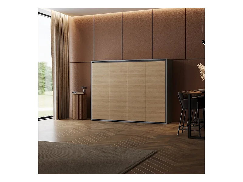 Lit escamotable 160x200cm Horizontal M2 Lit Mural Anthracite-Chene Kaiser