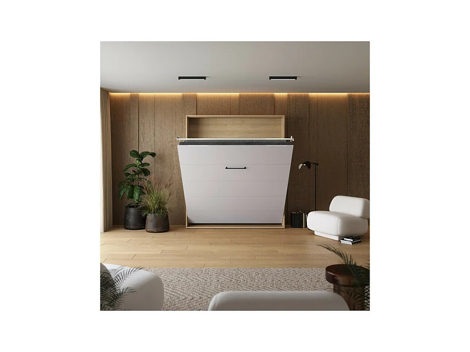 Lit escamotable 160x200cm Vertikal M1 Lit Mural Chene Kaiserberg-Blanc brillant