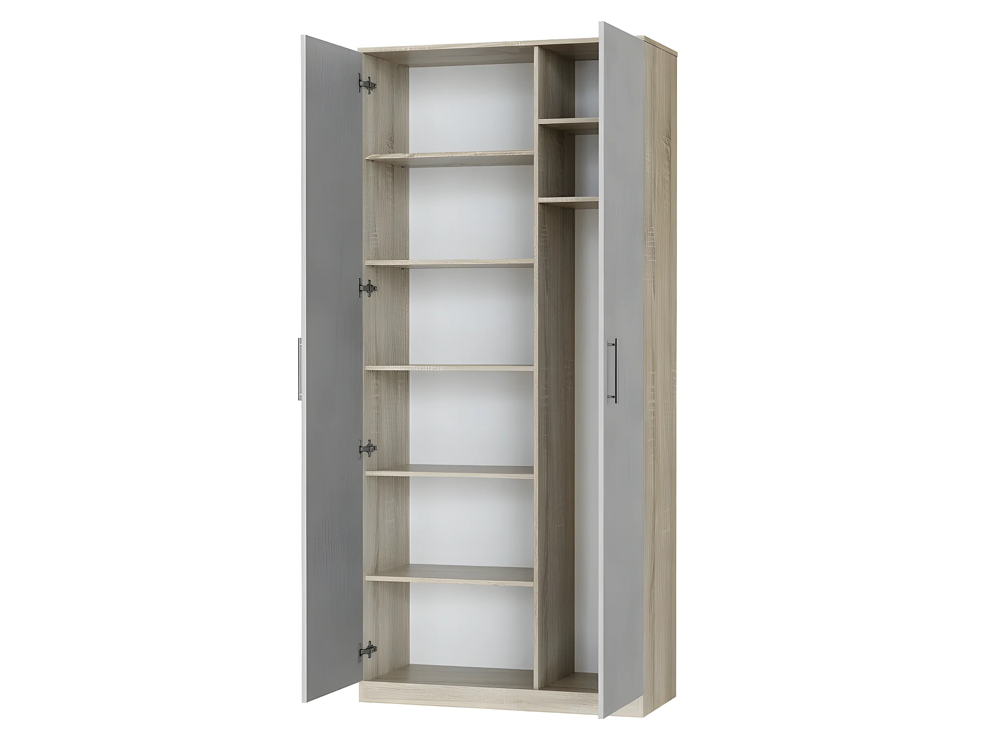 Lit escamotable +2 Placards Vertical 140x200+(100x2)cm Lit Rabattable Lit Mural Standard Chêne Sonoma/Béton