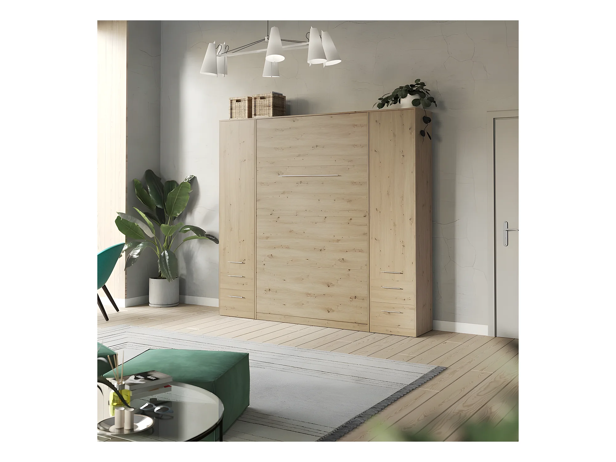 Lit escamotable +2 Placards Vertical 140x200+(50x2)cm Lit Rabattable Lit Mural Standard Chêne Sauvage/Chêne Sauvage