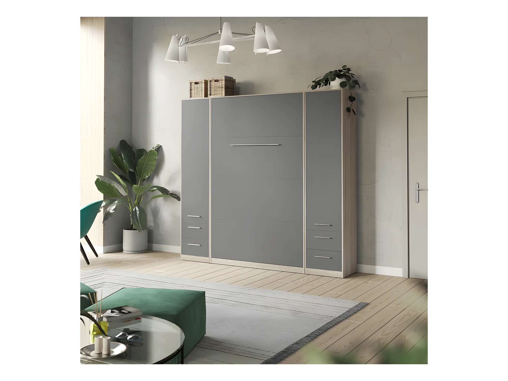 Lit escamotable +2 Placards Vertical 140x200+(50x2)cm Lit Rabattable Lit Mural Standard Chêne Sonoma/Anthracite