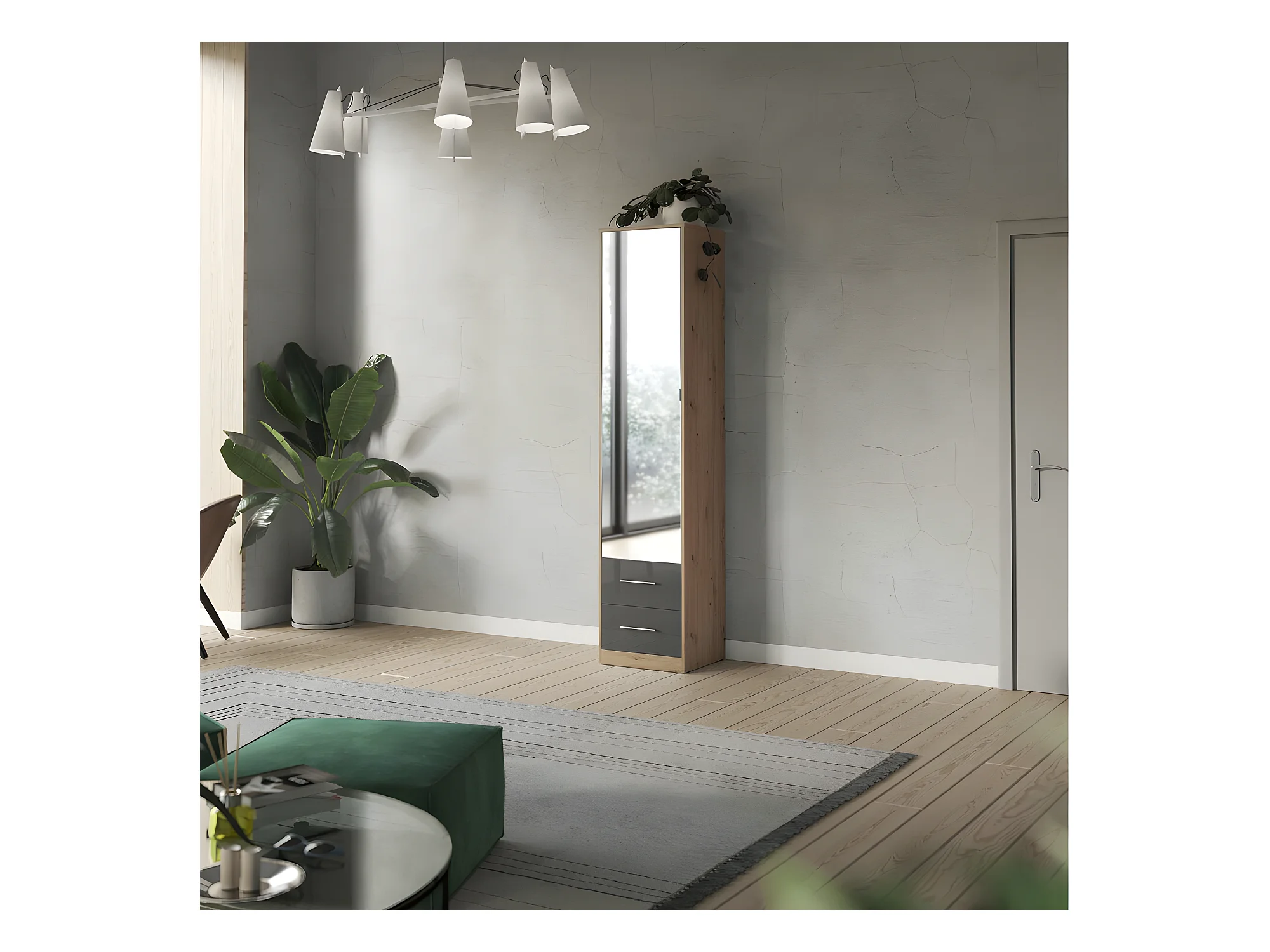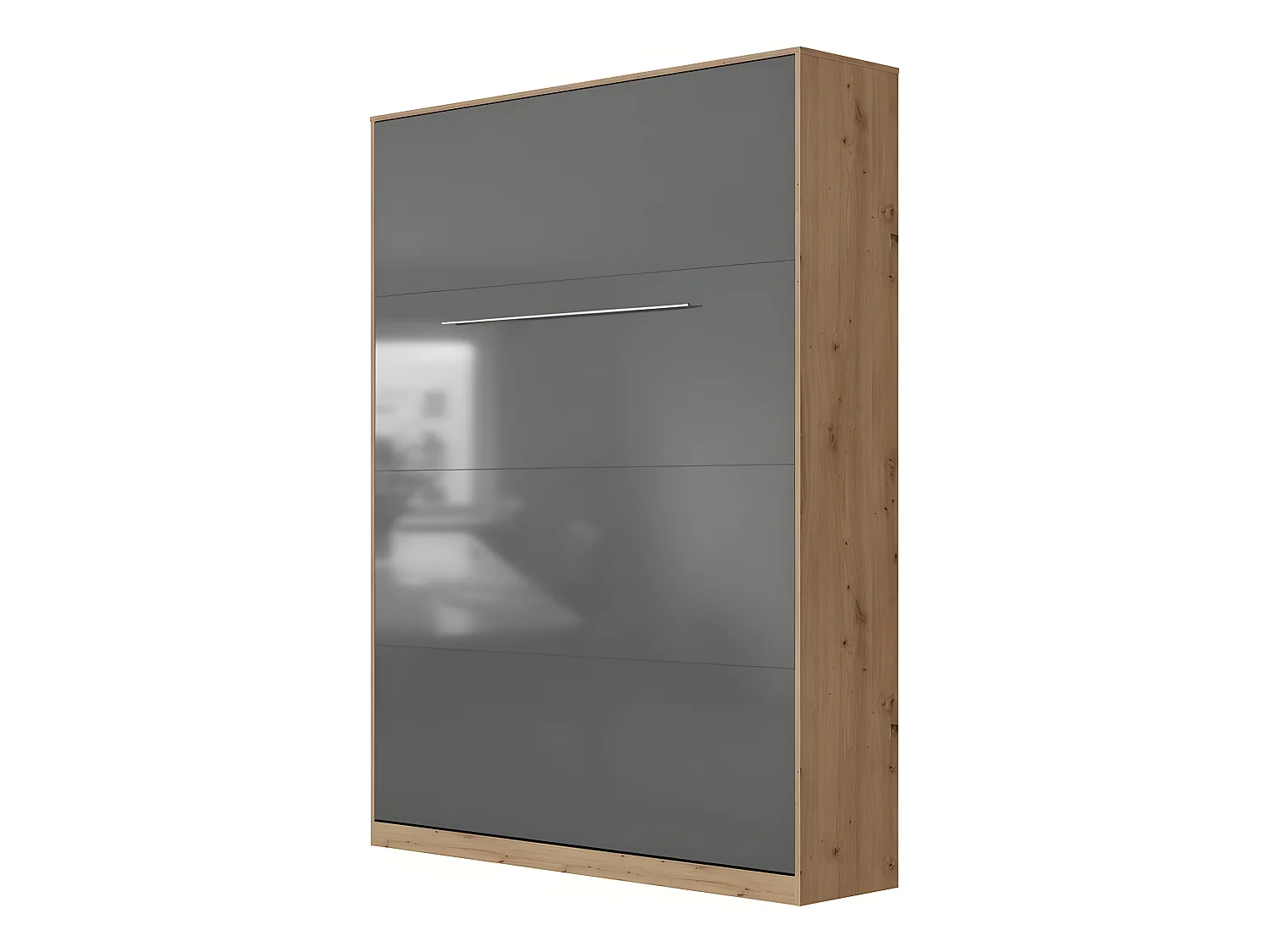 Lit escamotable +2 Placards Vertical 140x200+(50x2)cm Miroir Supérieur Chêne/Anthracite brillant