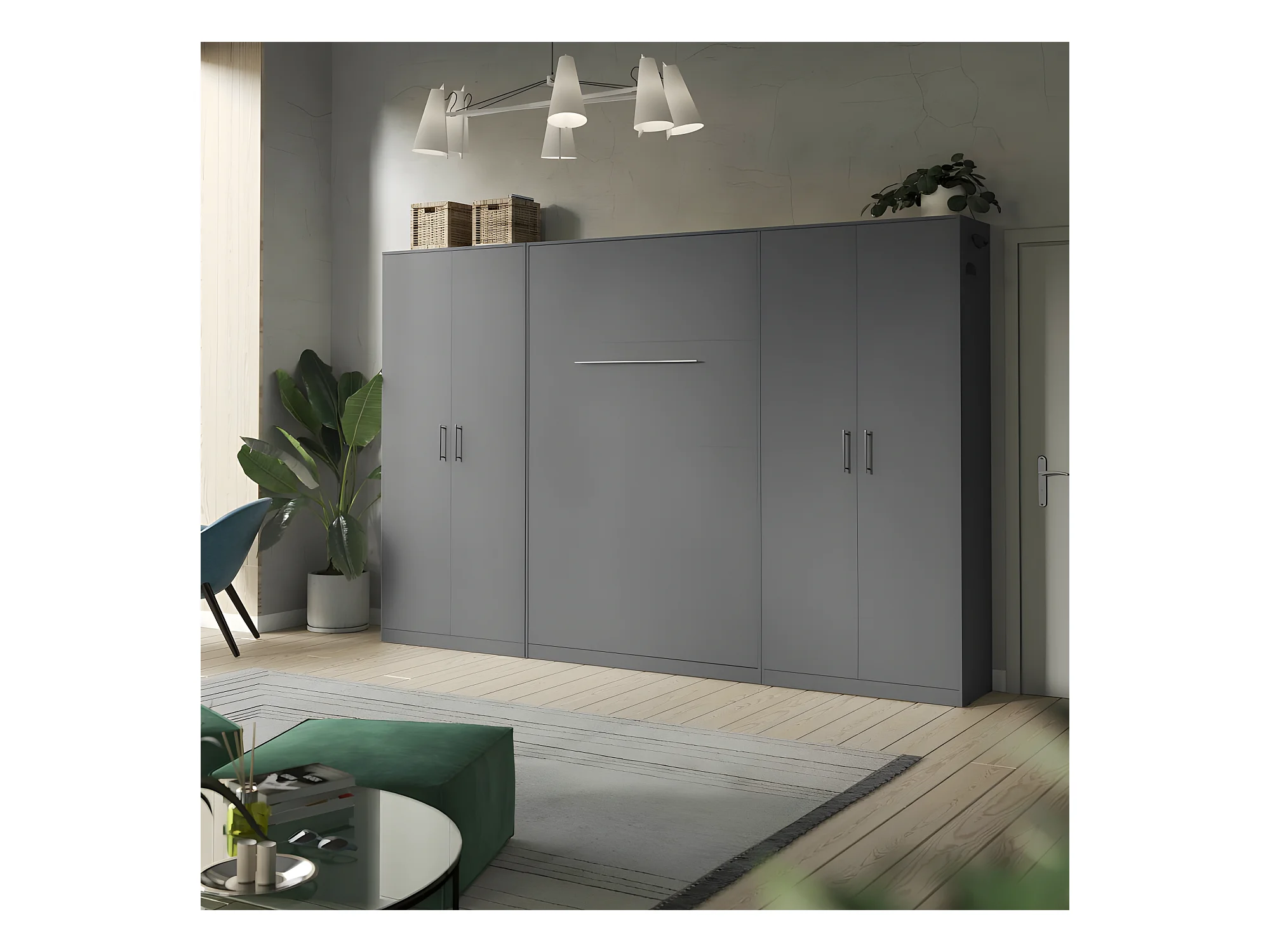 Lit escamotable +2 Placards Vertical 140x200+(80x2)cm Lit Rabattable Lit Mural Standard Anthracite/Anthracite