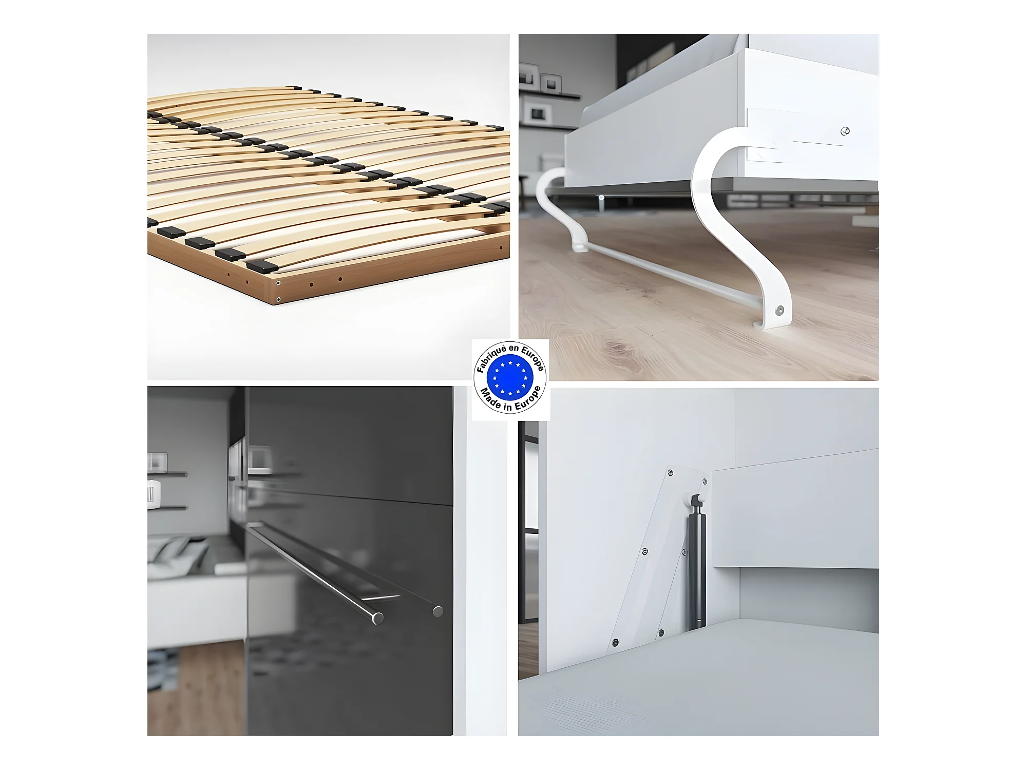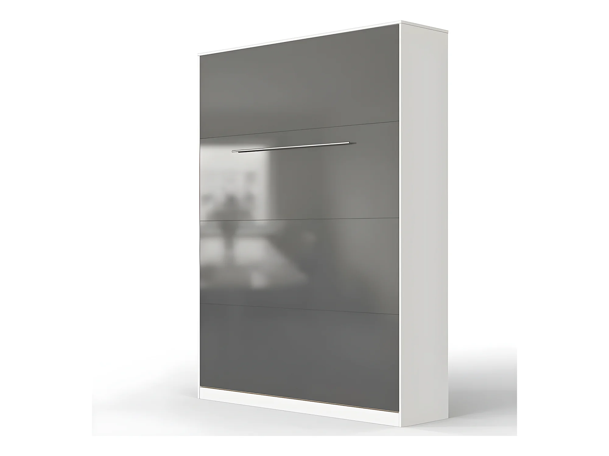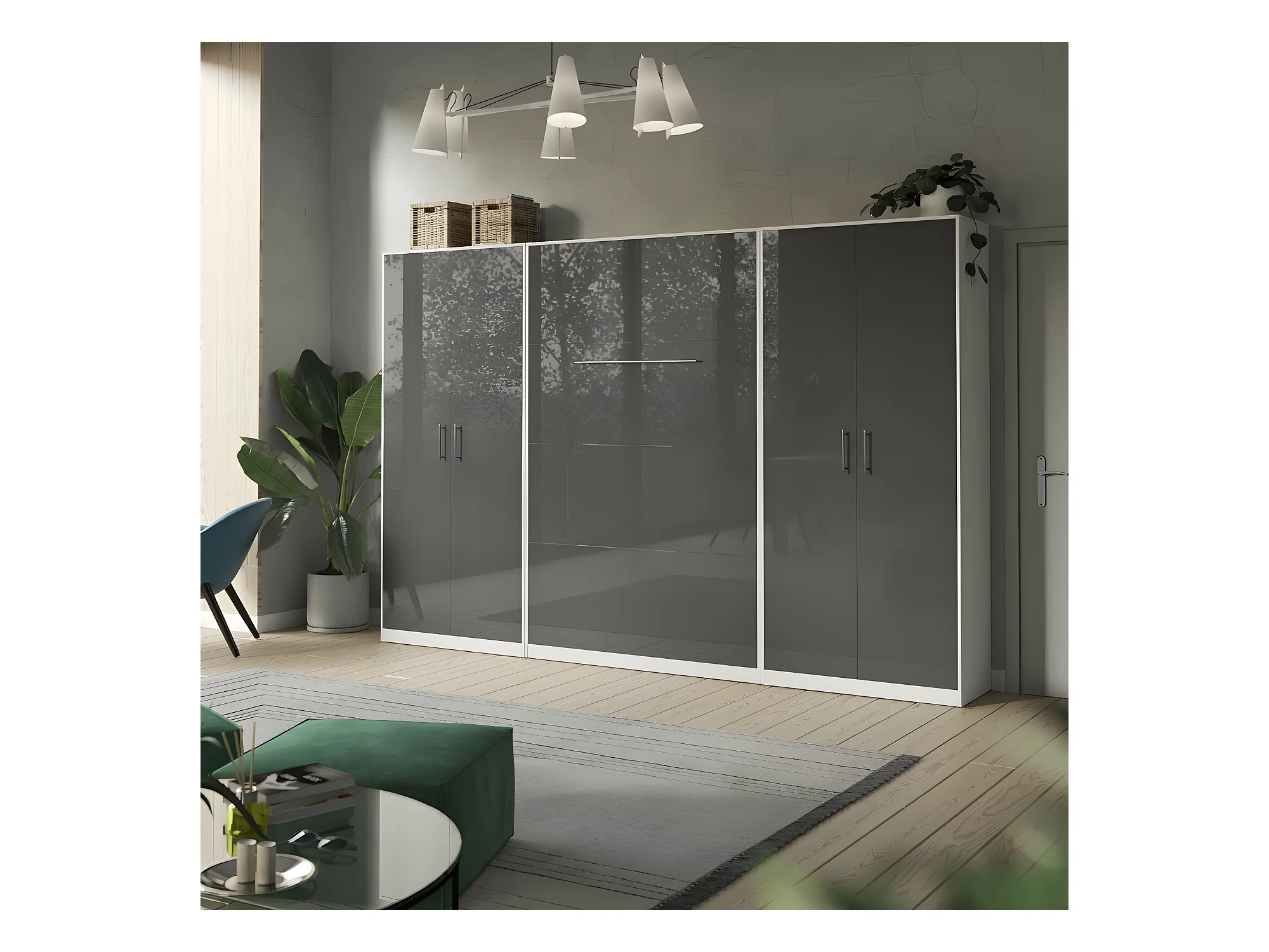 Lit escamotable +2 Placards Vertical 140x200+(80x2)cm Lit Rabattable Lit Mural Standard Blanc/Anthracite Brillant