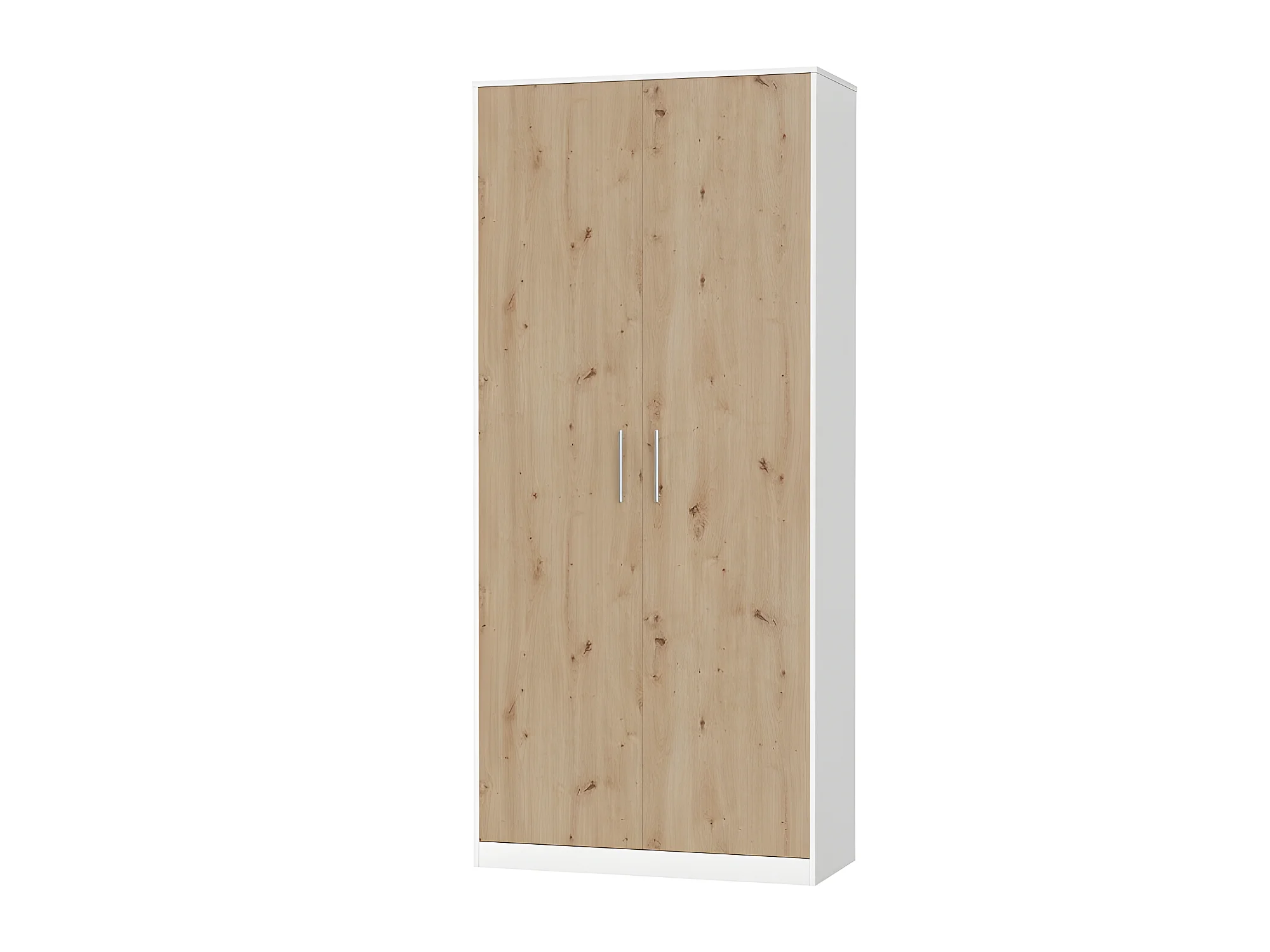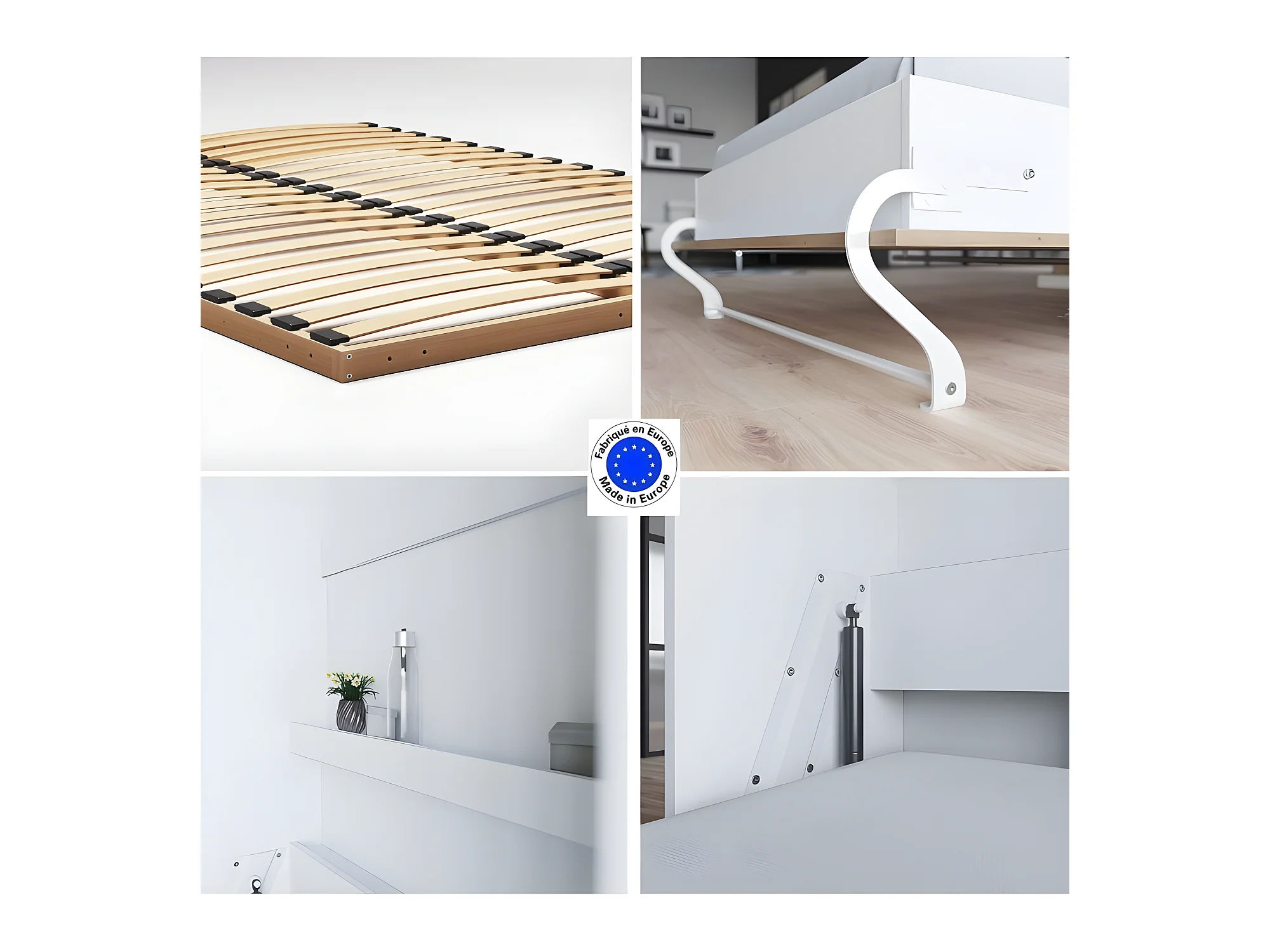 Lit escamotable +2 Placards Vertical 140x200+(80x2)cm Lit Rabattable Lit Mural Standard Blanc/Chêne Sauvage