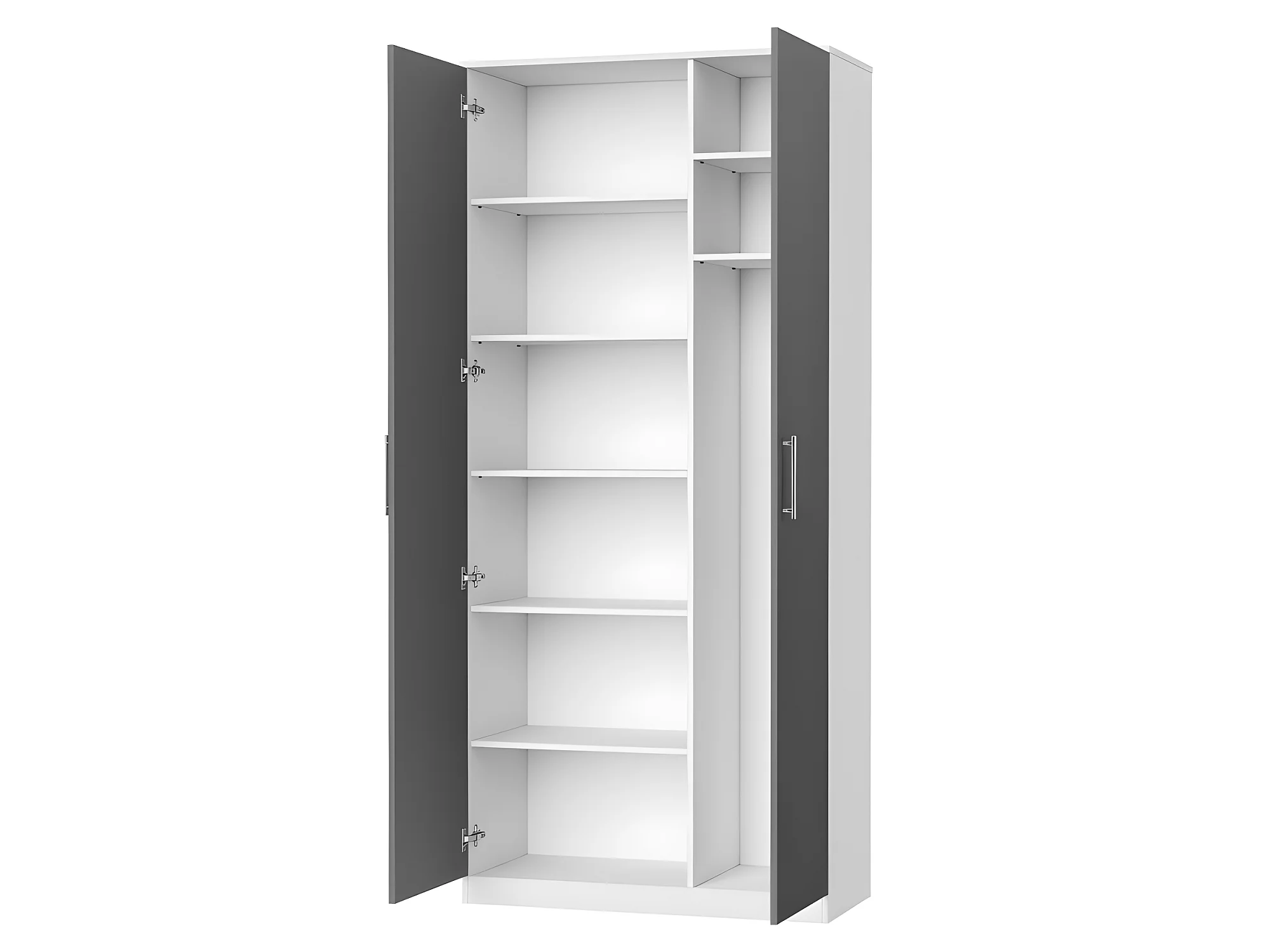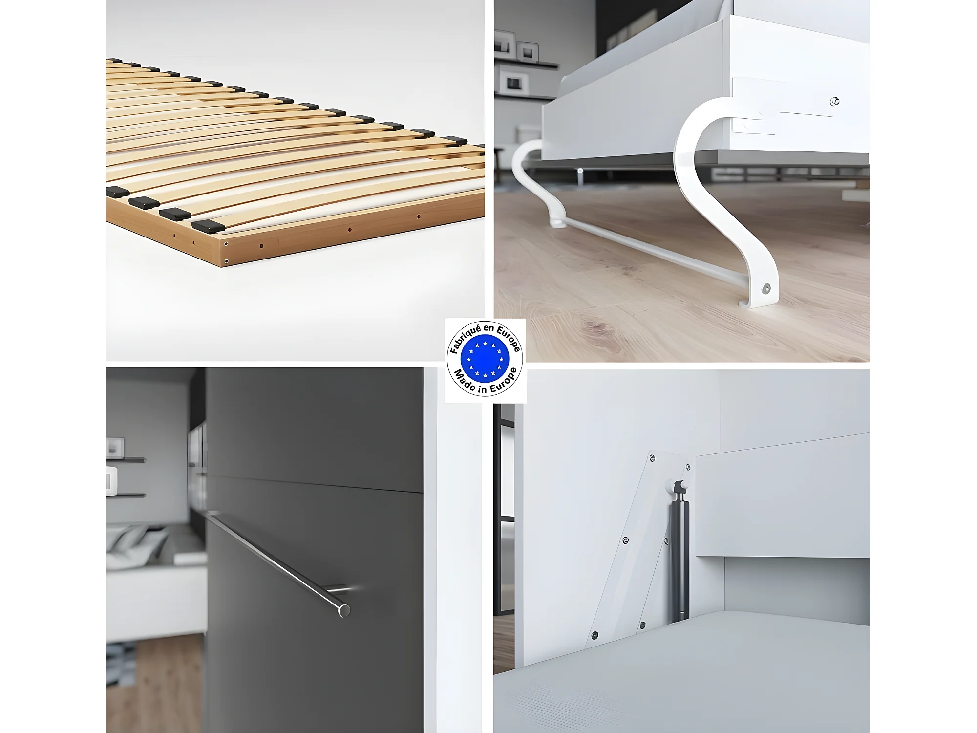 Lit escamotable +2 Placards Vertical 90x200+(100x2)cm Lit Rabattable Lit Mural Standard Blanc/Anthracite