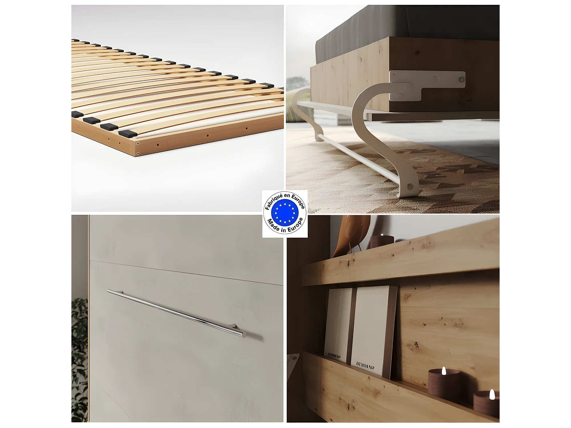 Lit escamotable +2 Placards Vertical 90x200+(50x2)cm Lit Rabattable Lit Mural Standard Chêne Sauvage/Béton