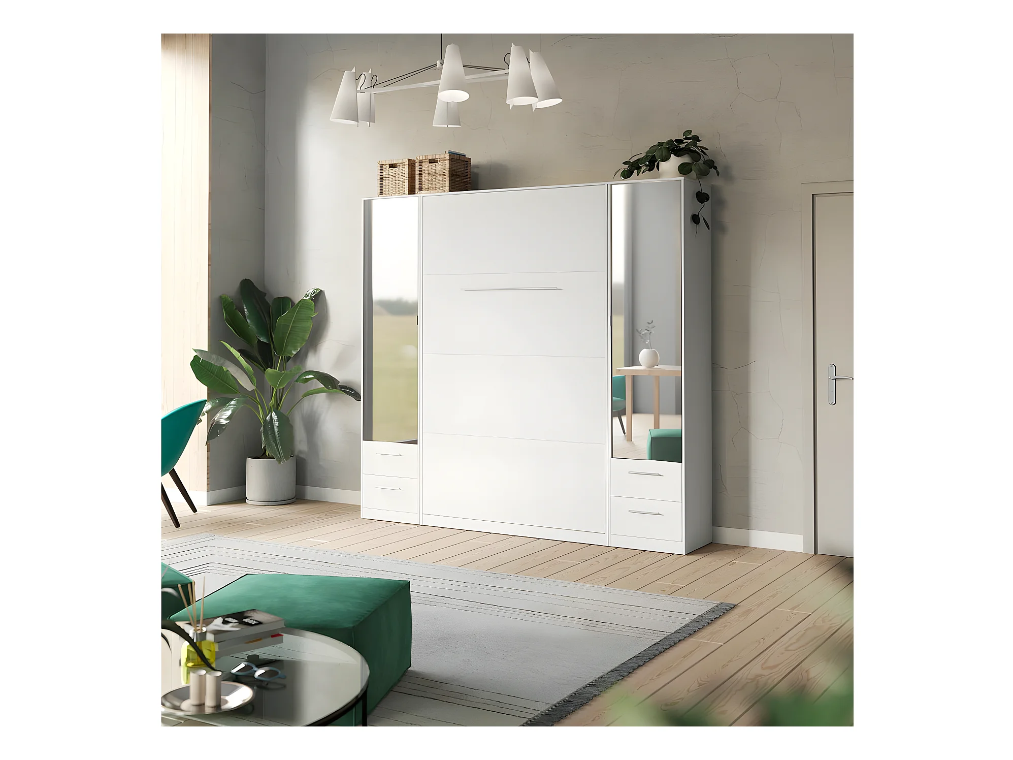 Lit escamotable +2 Placards Vertical 90x200+(50x2)cm Miroir Lit Mural Blanc/blanc