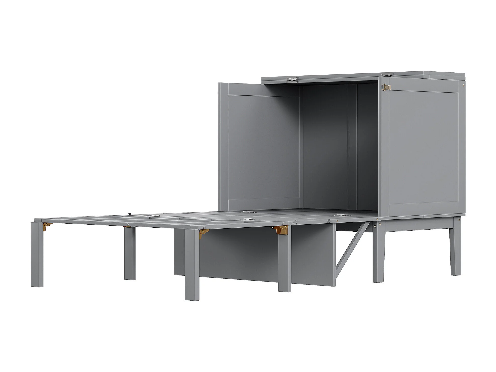 Lit escamotable 90x200 cm, avec sommier à lattes - Lit enfant / adulte - Bois gris