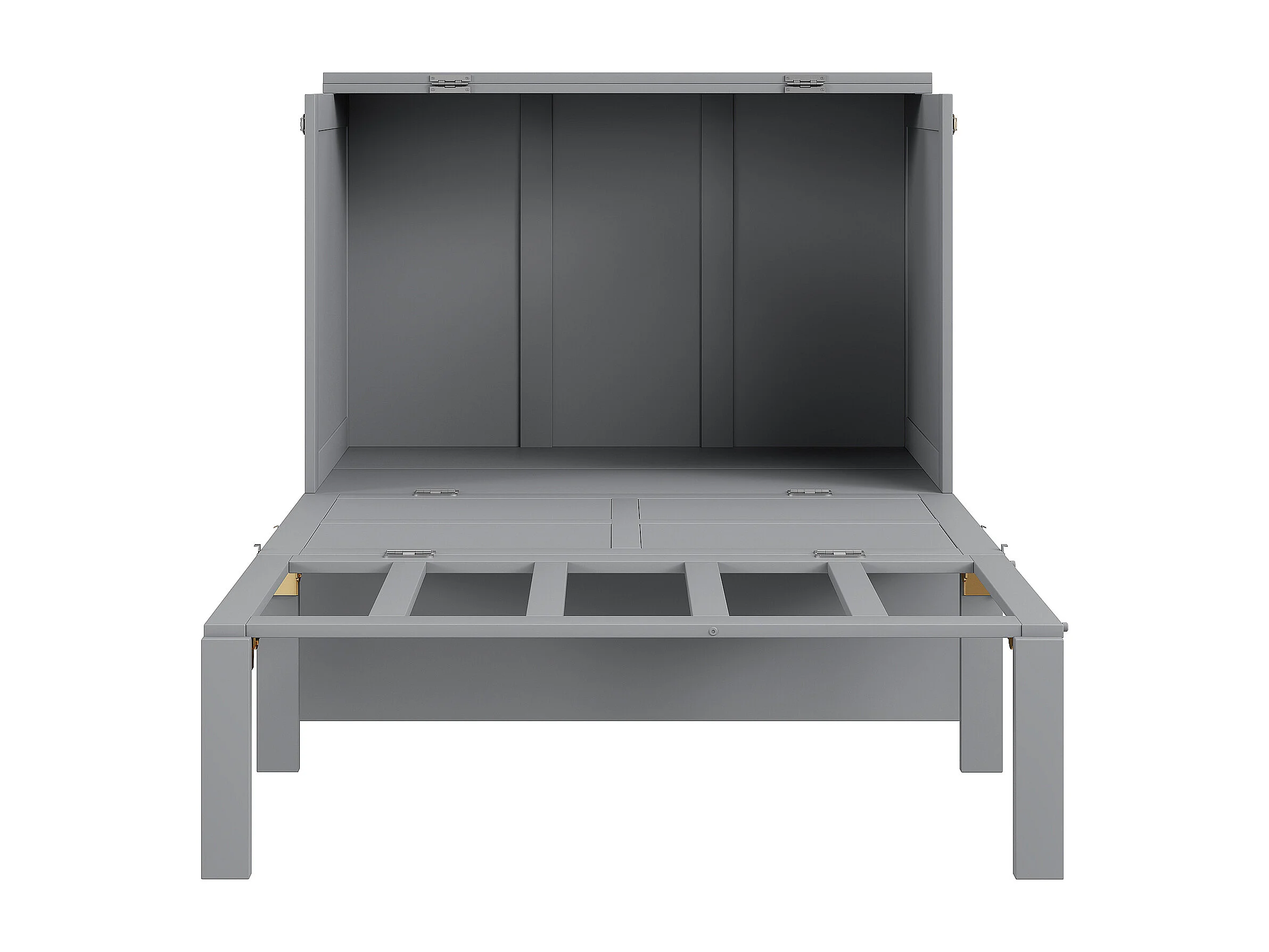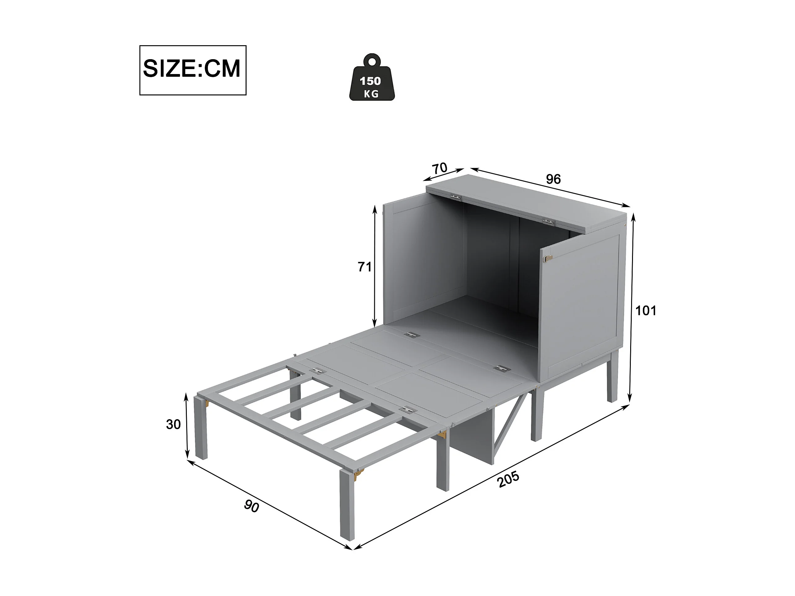 Lit escamotable 90x200 cm, avec sommier à lattes, lit pliant mural, dimension après pliage : 70x90cm, sans matelas, bois, gris