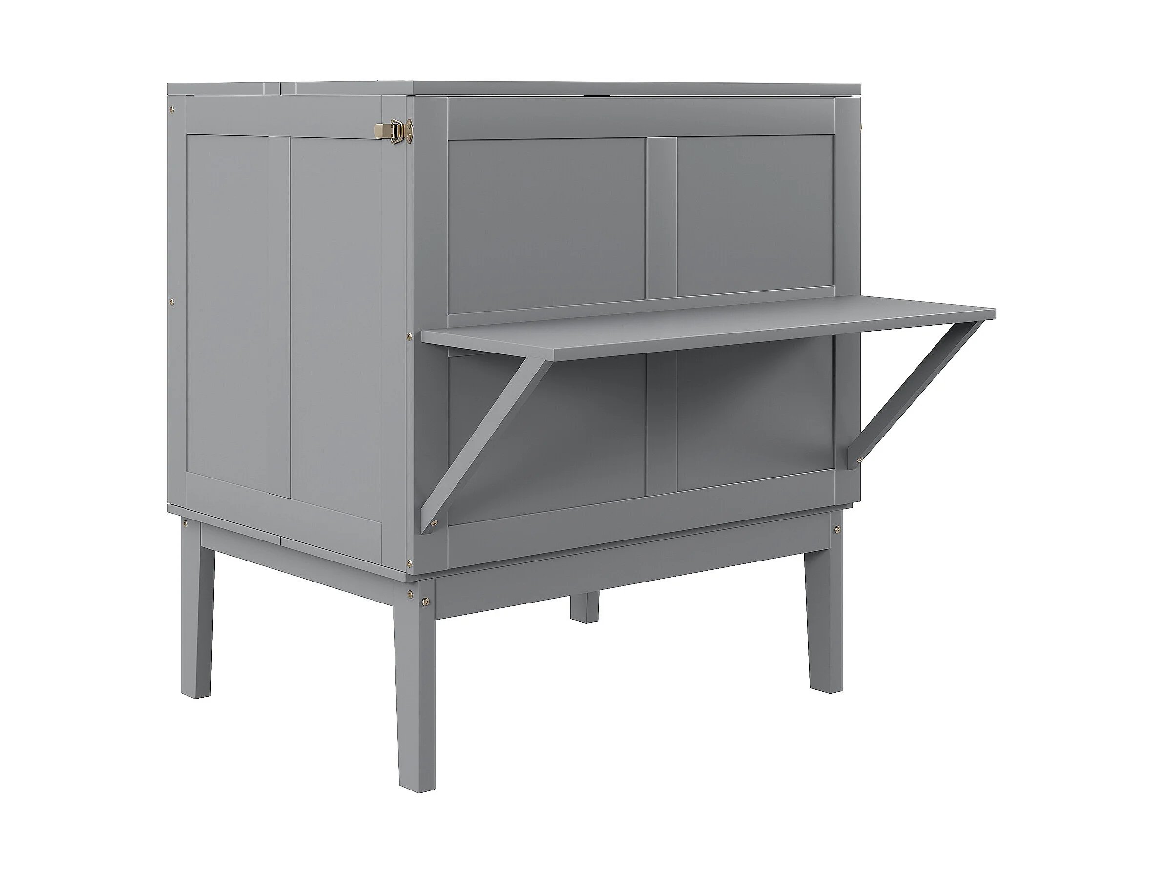 Lit escamotable 90x200 cm - lit pliant mural, lit vertical escamotable à lattes - gris