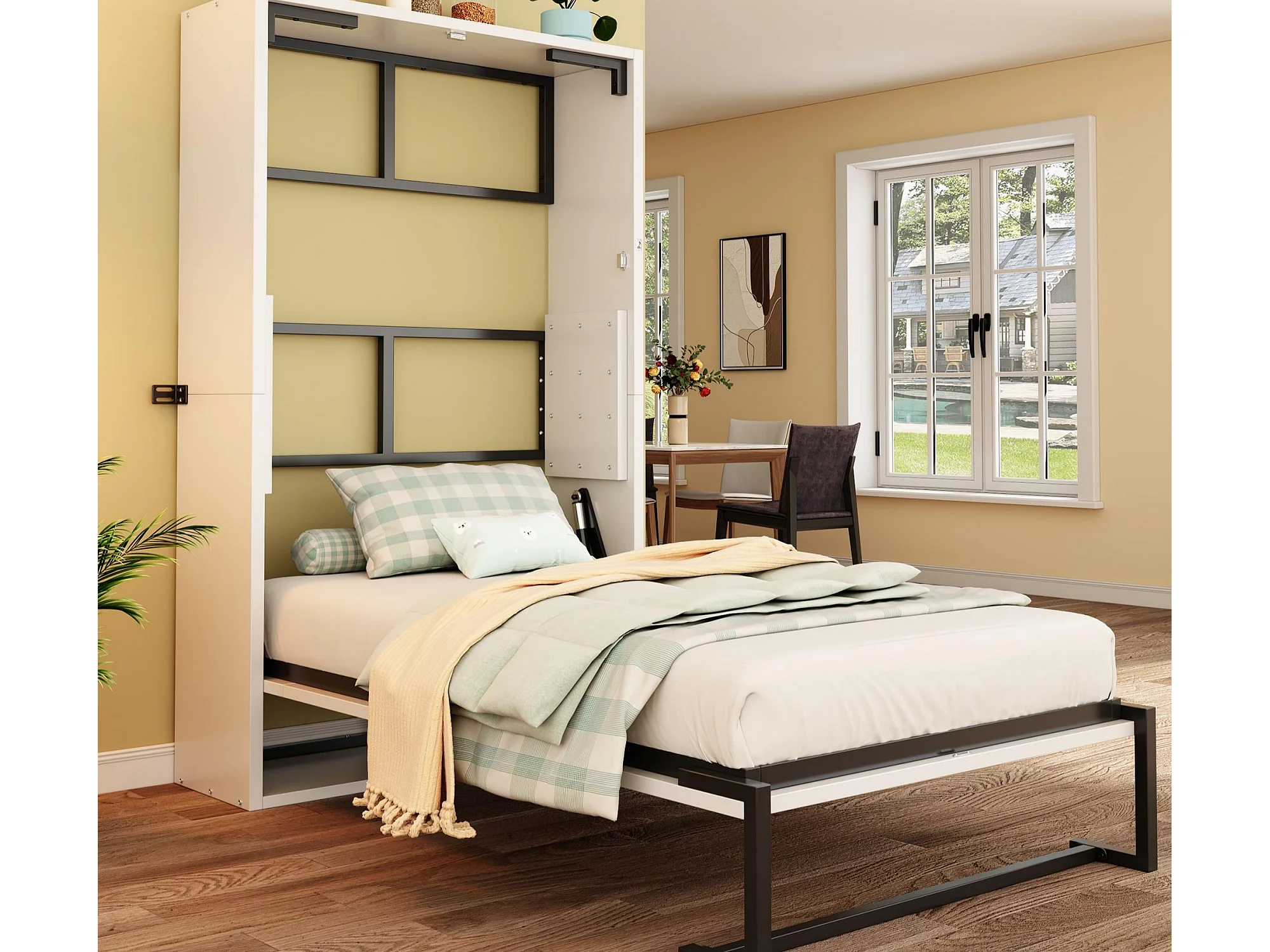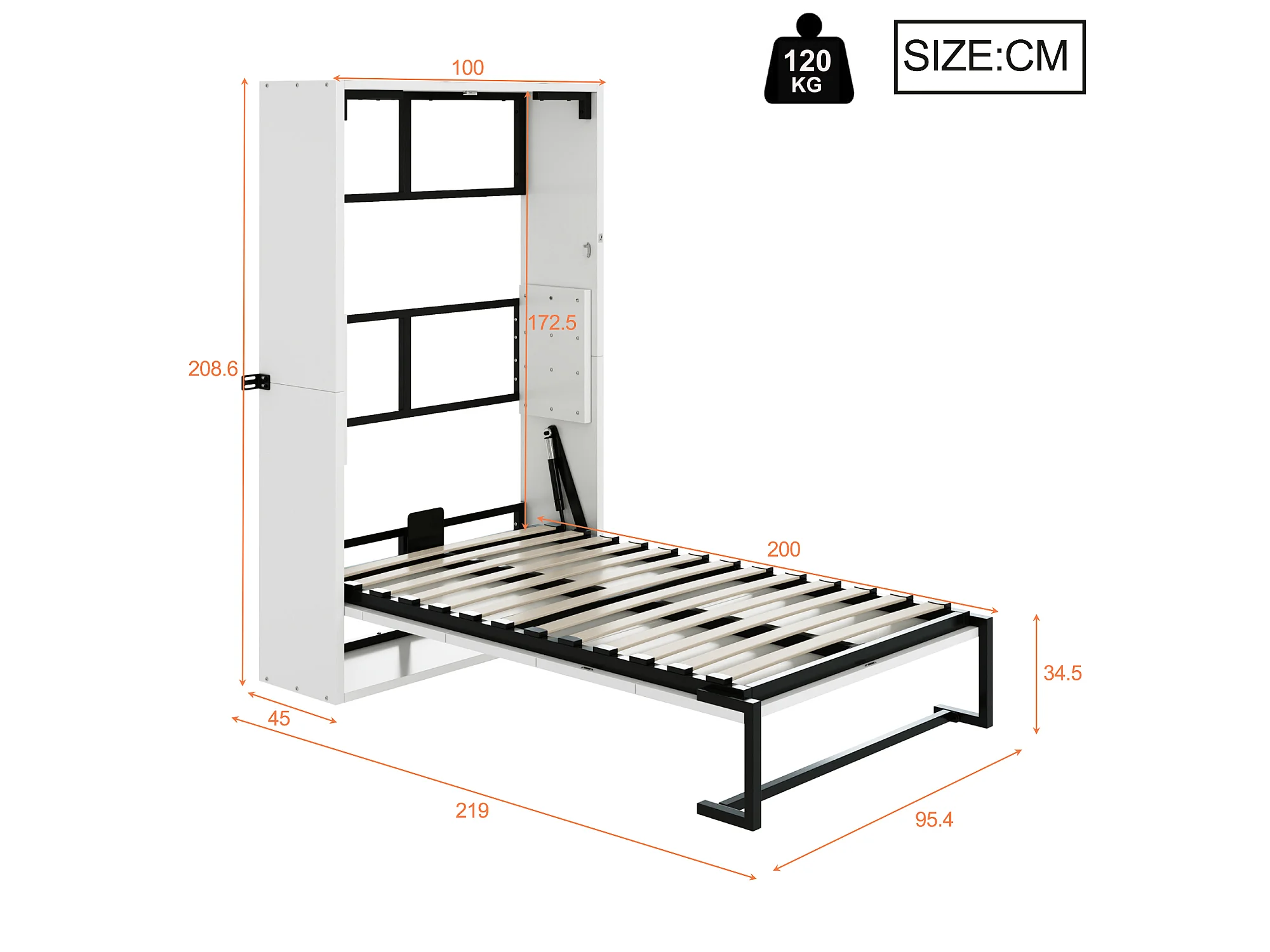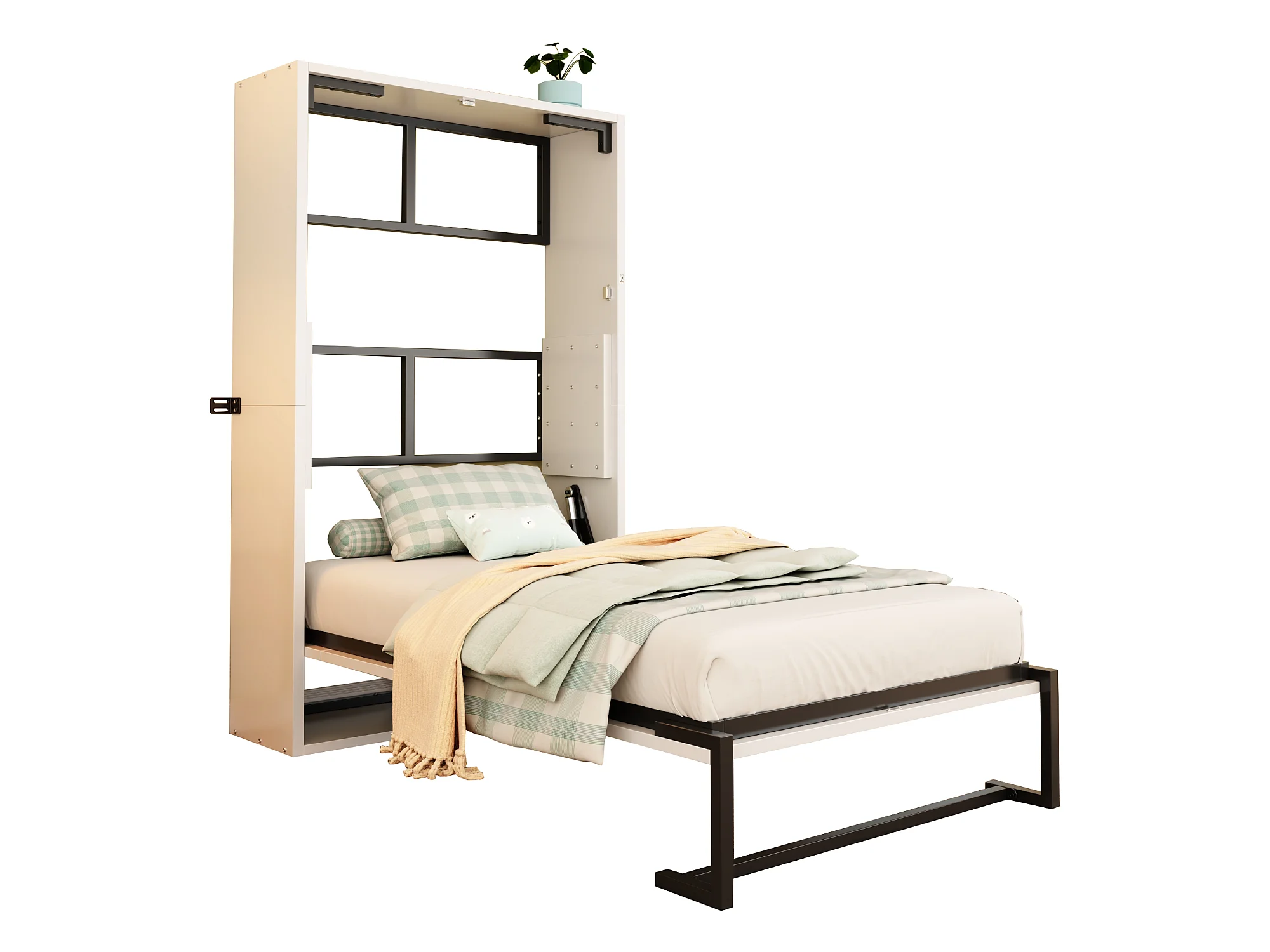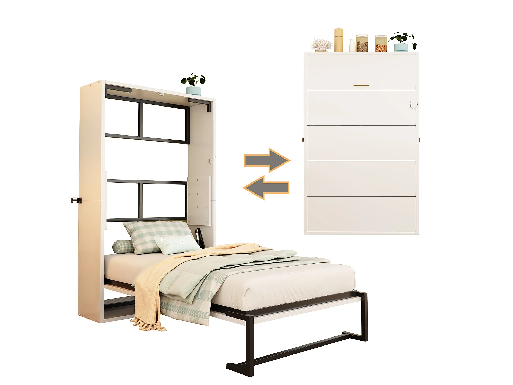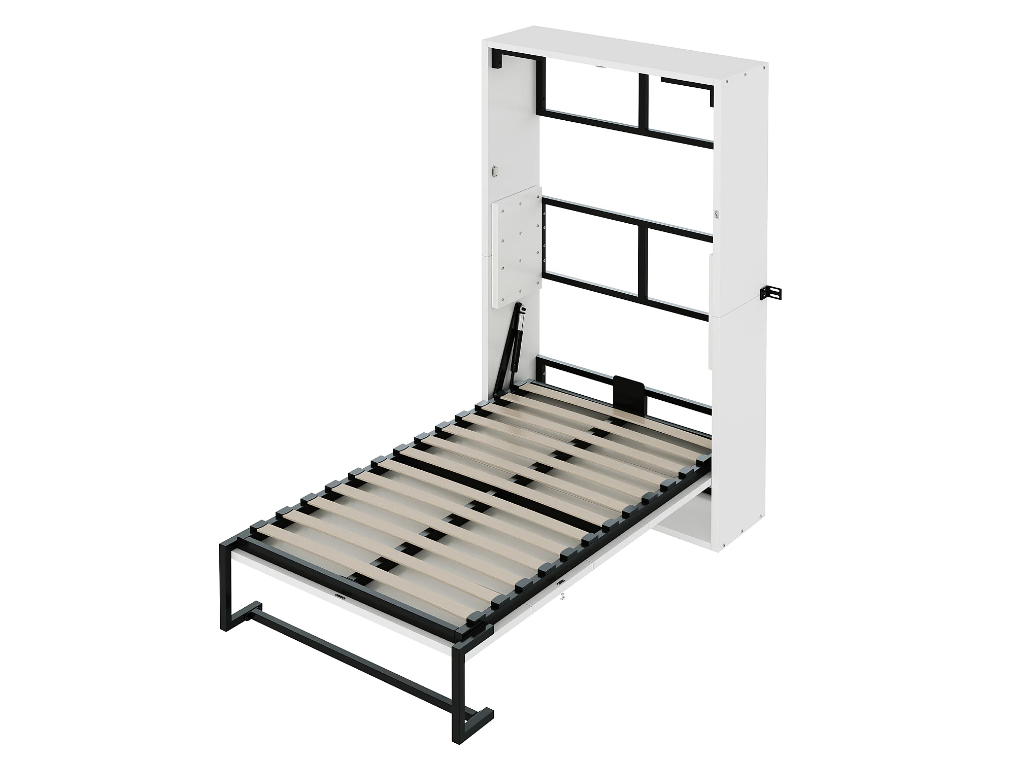 Lit escamotable 90x200cm - Cadre en métal + panneau en bois - Avec fixation murale verrouillable - Blanc (Matelas non inclus)