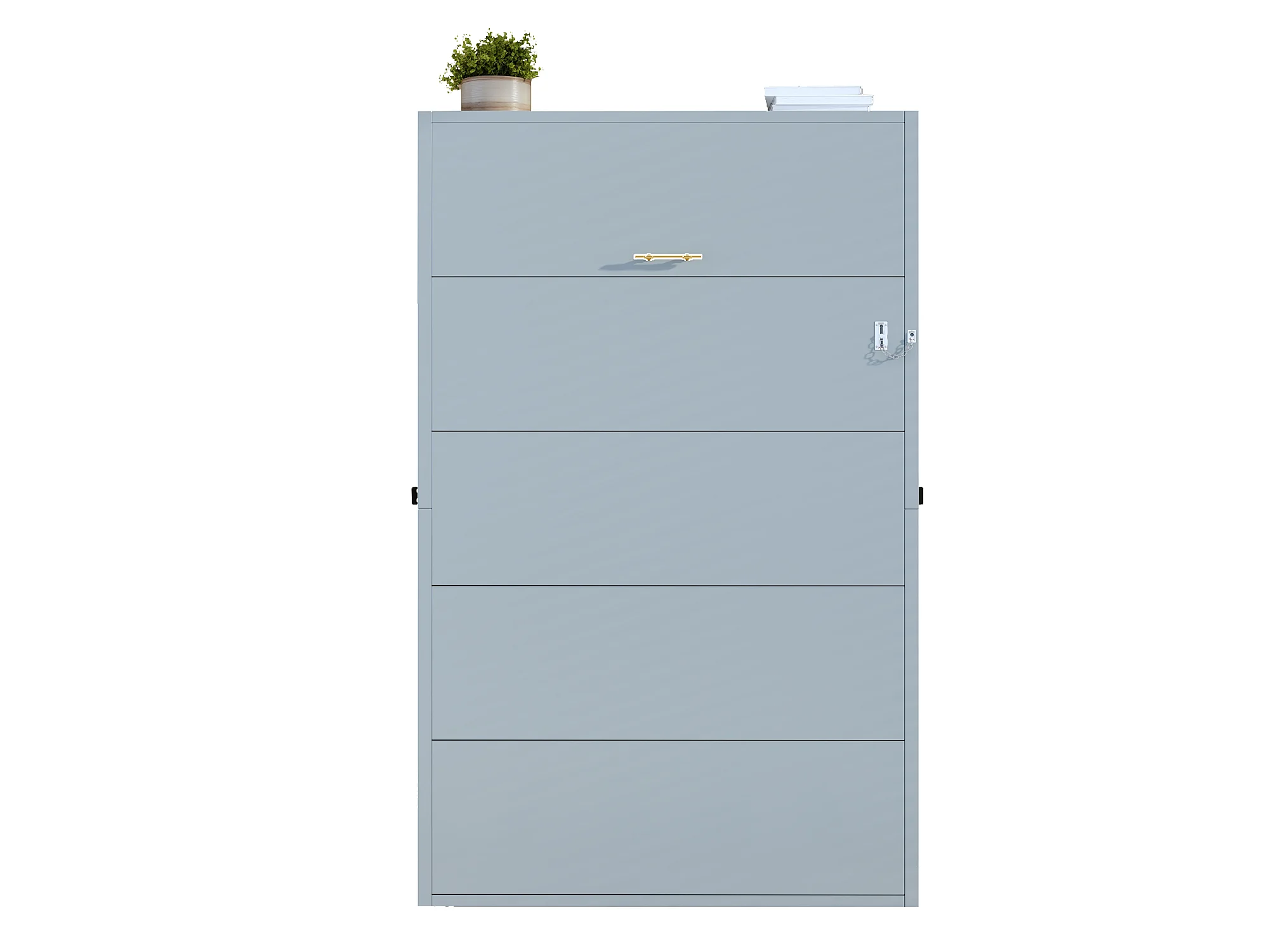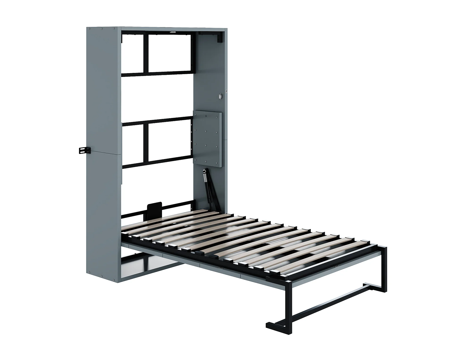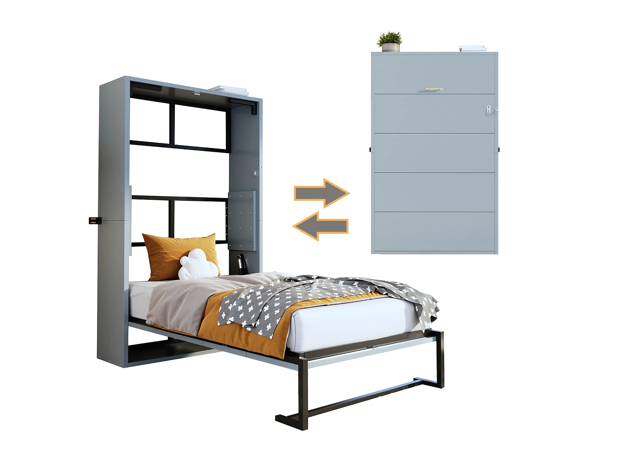 Lit escamotable 90x200cm - Cadre en métal + panneau en bois - Avec fixation murale verrouillable - Gris (Matelas non inclus)