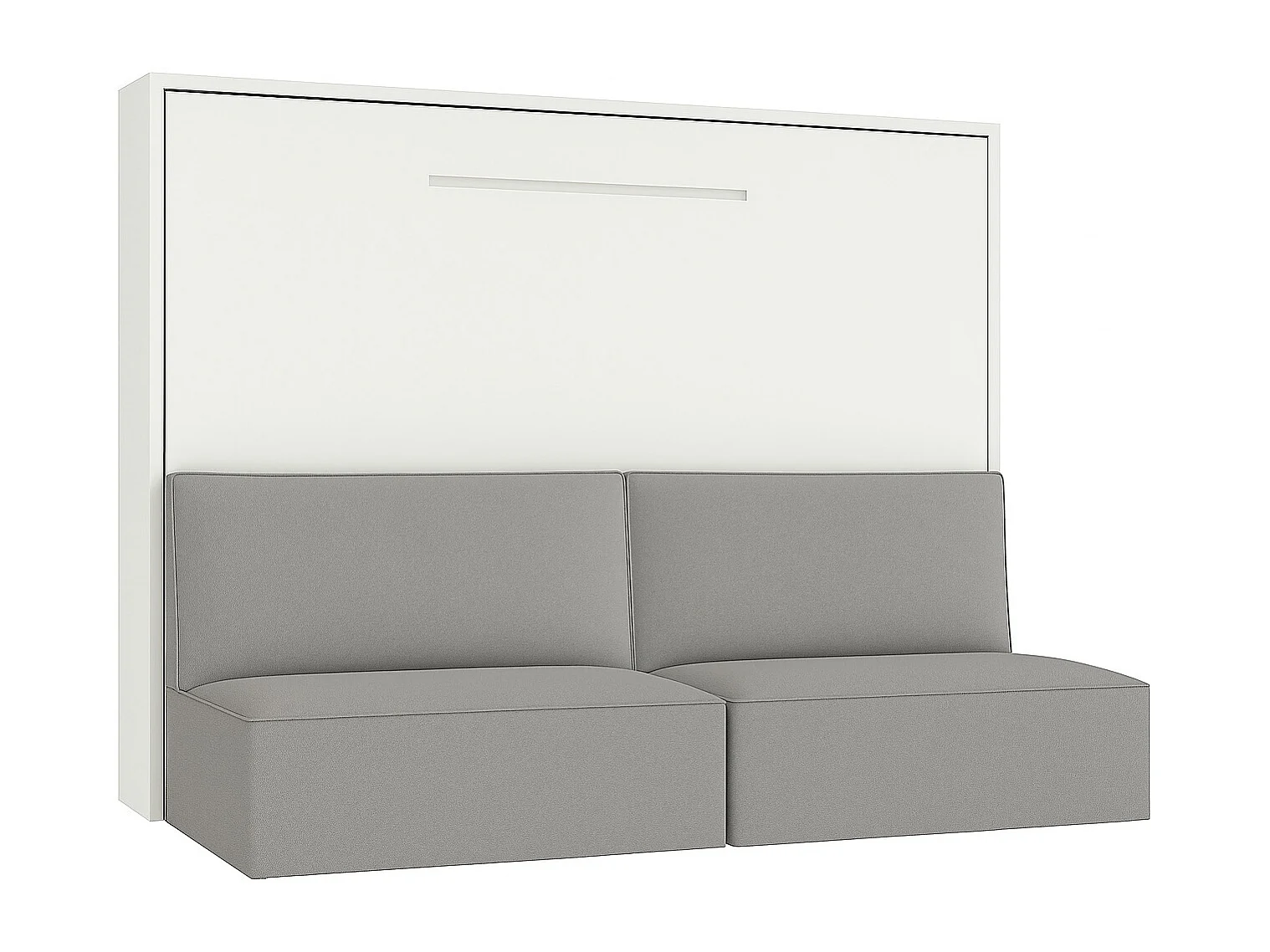 Lit escamotable horizontal avec banquette & coffres LOGIA-120x200-Canapé Gris clair-Structure Blanche