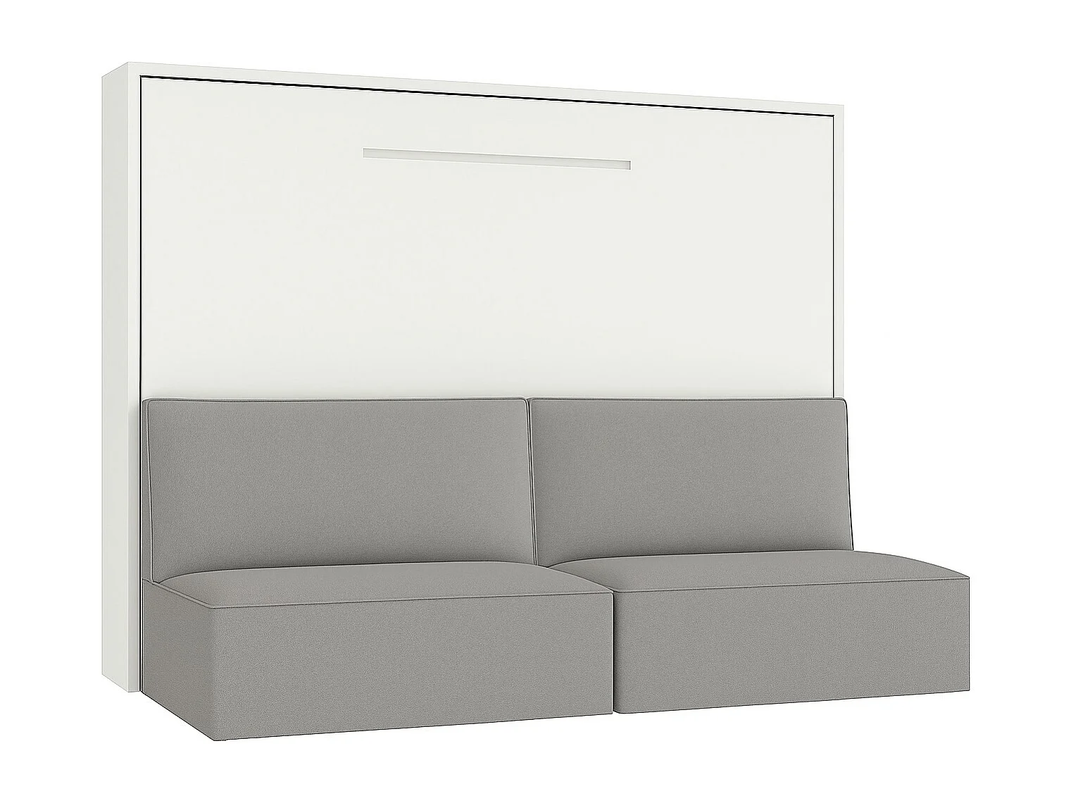 Lit escamotable horizontal avec banquette & coffres LOGIA-140x190-Canapé Gris clair-Structure Blanche