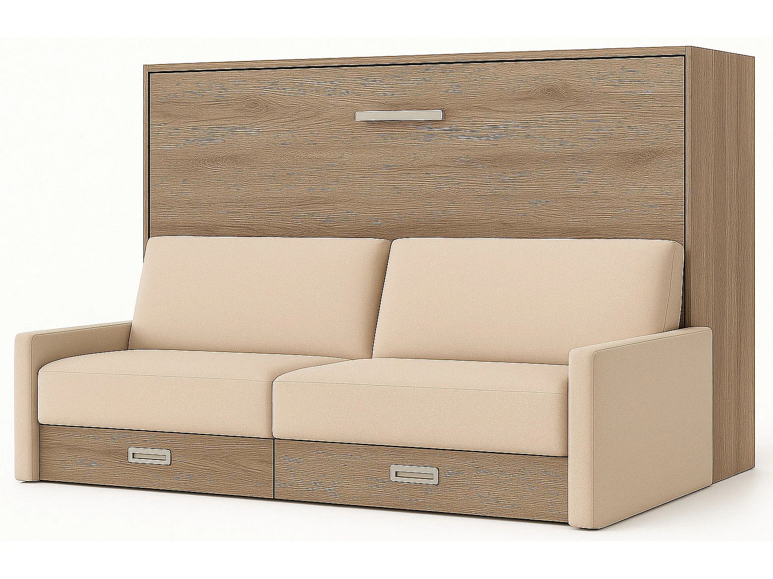 Lit escamotable horizontal avec canapé VETAL-140x200-Canapé Naturel-Structure Chêne clair