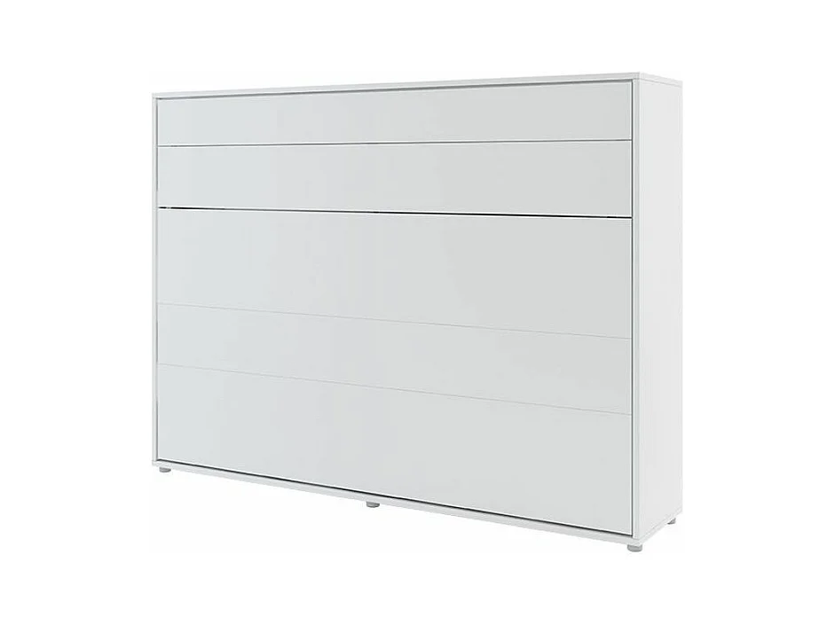 Lit escamotable horizontal avec étagères blanc mat Noby 120x200-Avec matelas