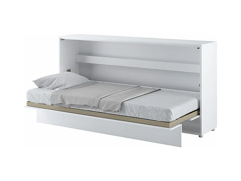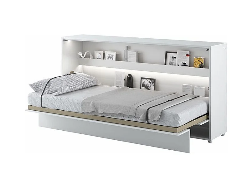 Lit escamotable horizontal avec étagères blanc mat Noby 90x200-Avec matelas