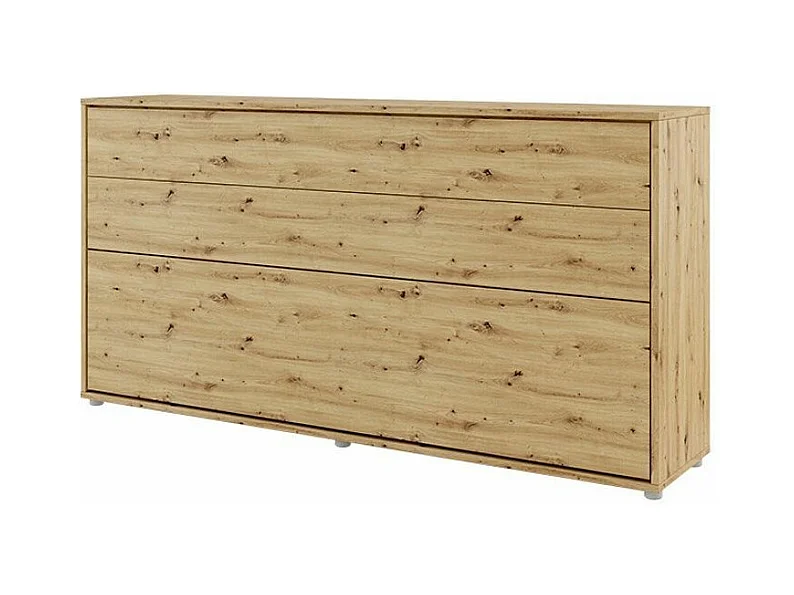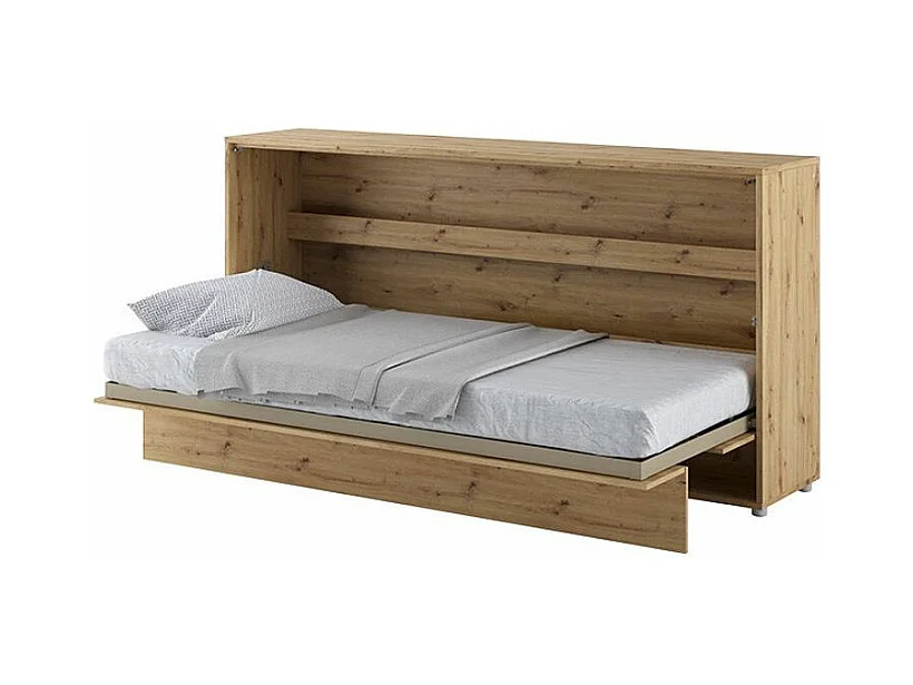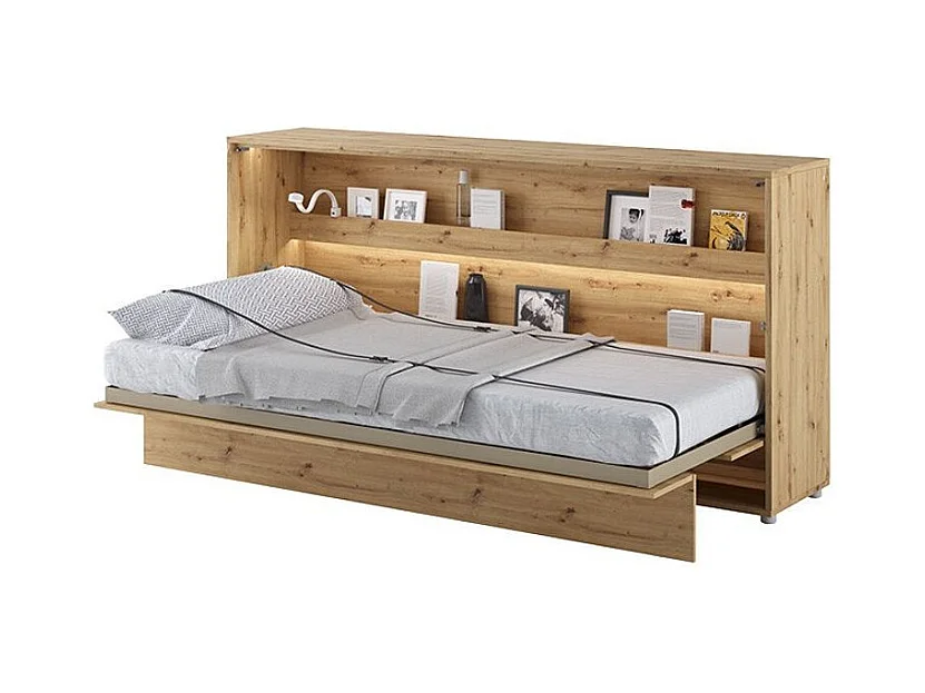 Lit escamotable horizontal avec étagères chêne artisan Noby 90x200-Avec matelas-Avec Led et 2 veilleuses