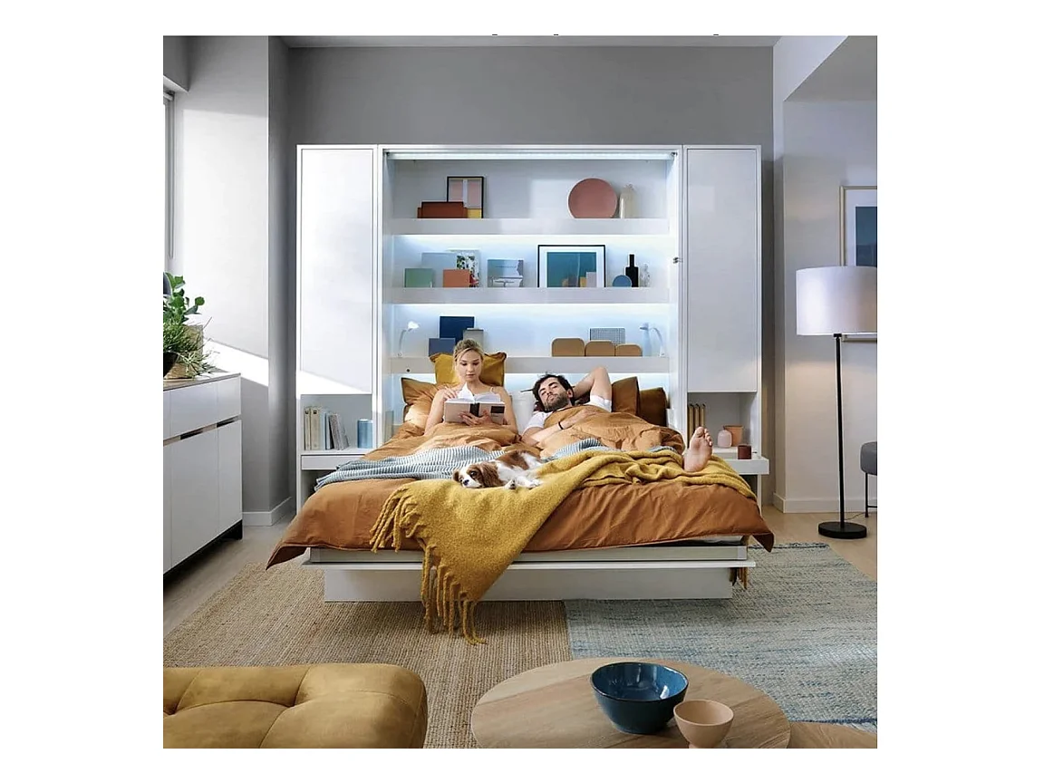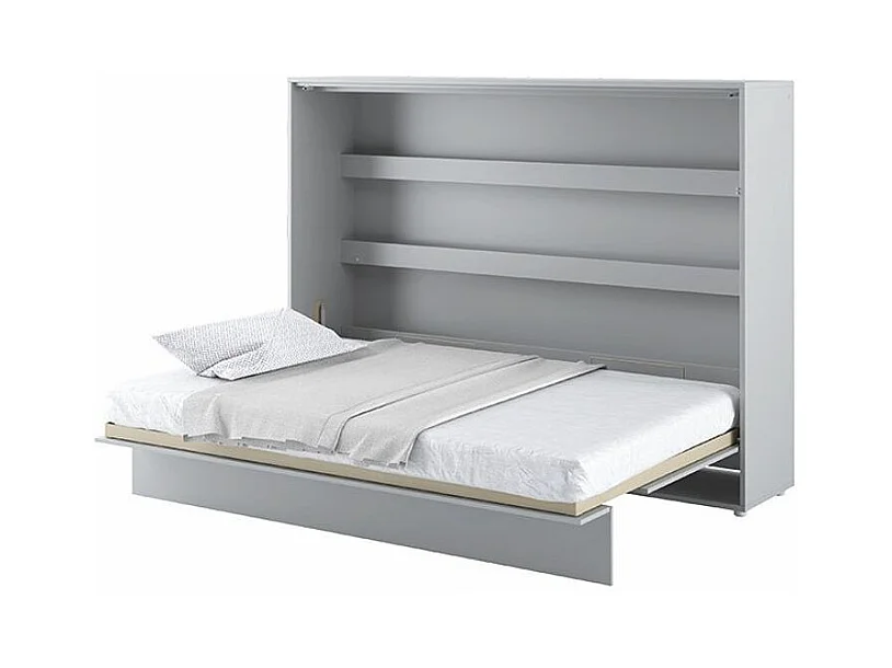 Lit escamotable horizontal avec étagères gris mat Noby 120x200-Avec Led sans veilleuses