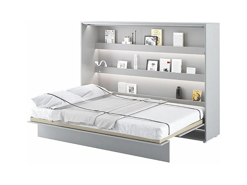 Lit escamotable horizontal avec étagères gris mat Noby 120x200-Avec matelas