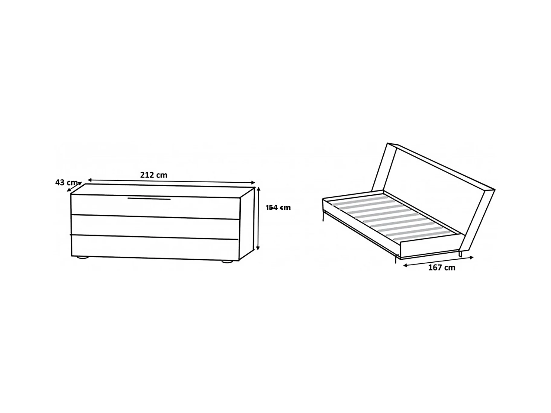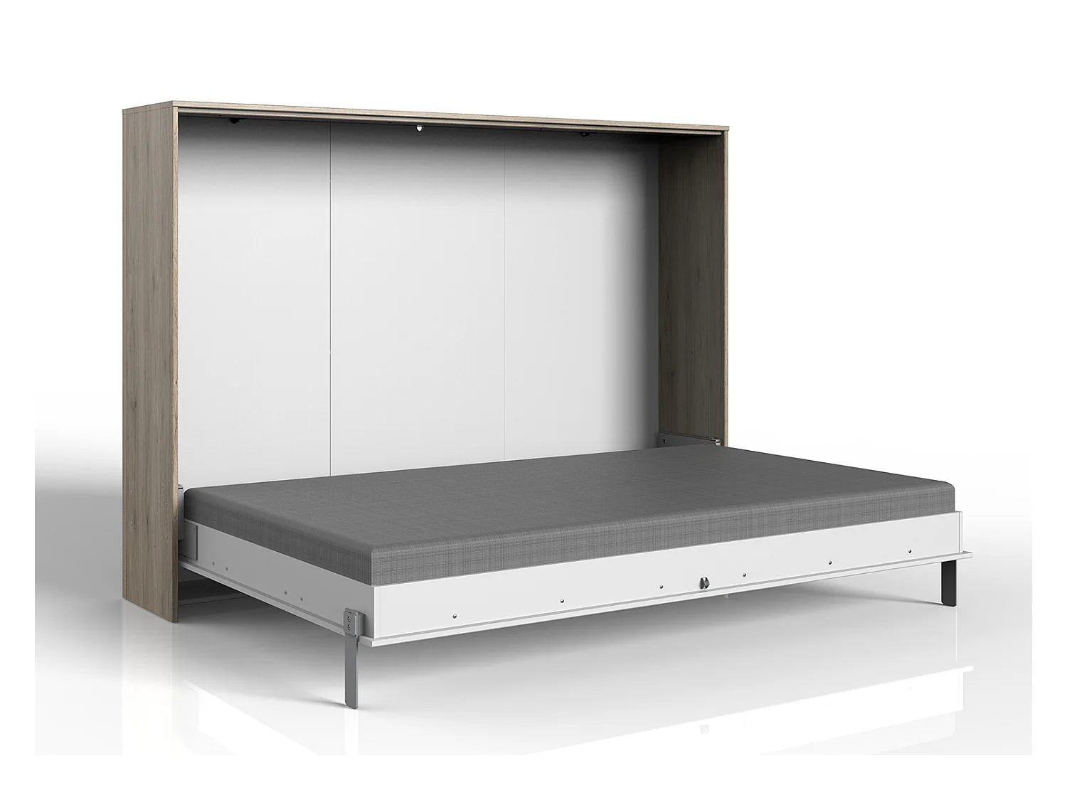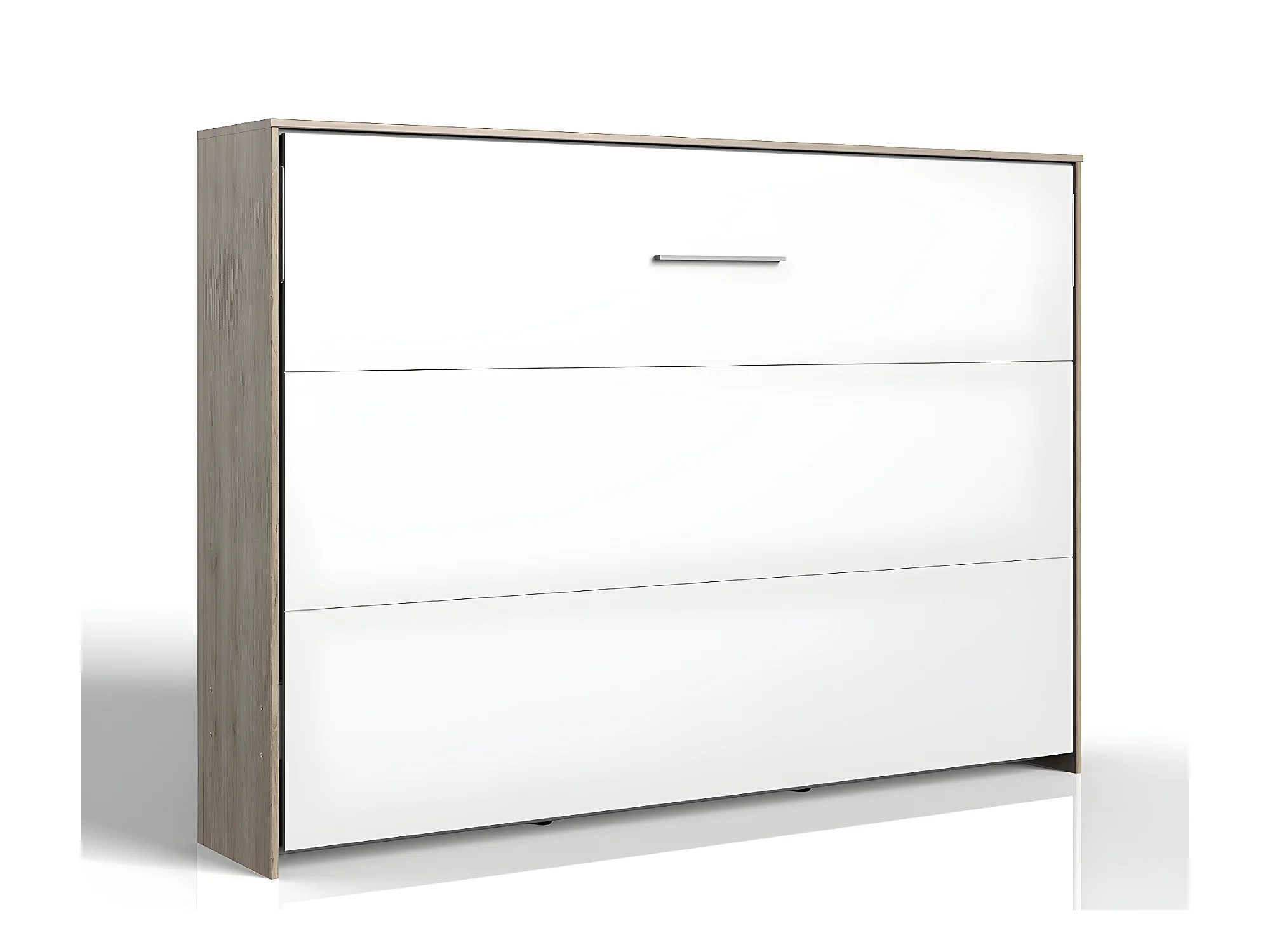 Lit escamotable horizontal coloris blanc/imitation chêne - L. 212 x H. 154 x P. 43-167 cm
