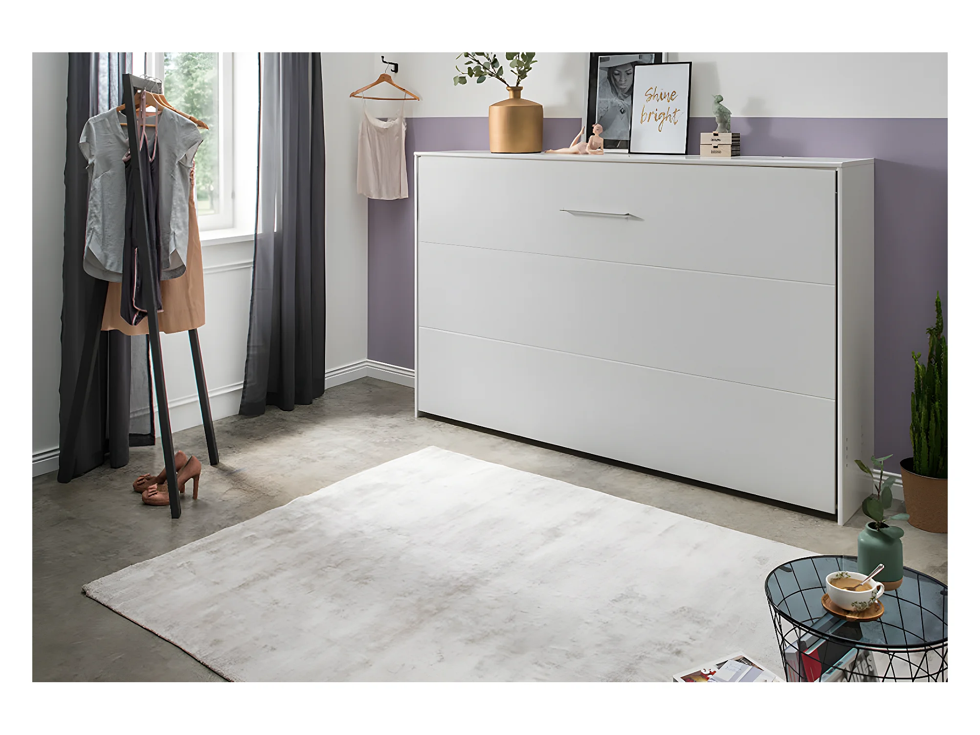 Lit escamotable horizontal coloris blanc - L. 212 x H. 154 x P. 43-167 cm