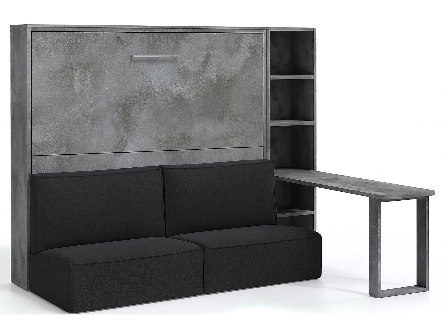 Lit escamotable horizontal LOGIA-140x190-Canapé Gris foncé-Structure Gris ciment-Version lit+canapé+étagère+bureau
