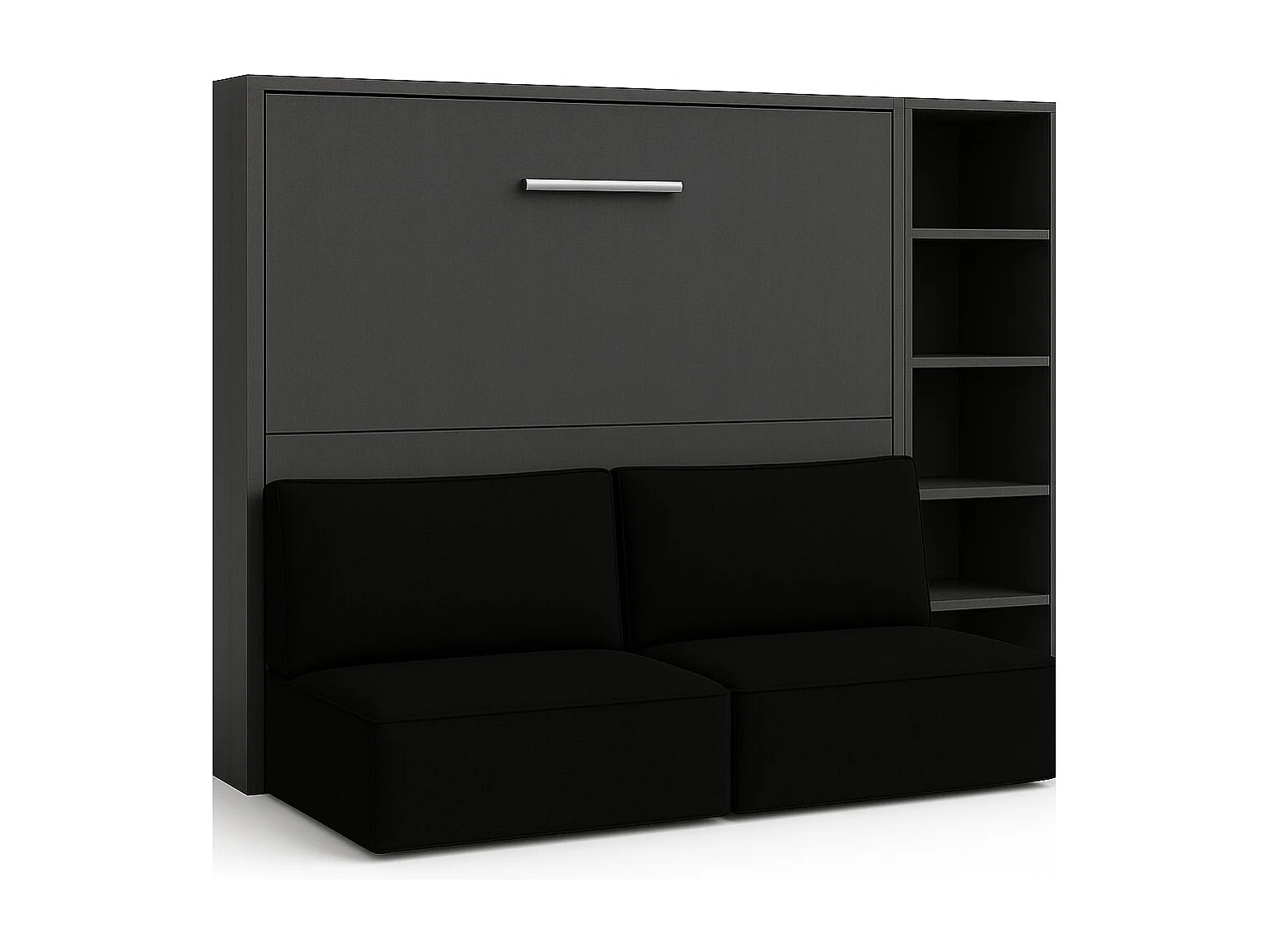 Lit escamotable horizontal LOGIA-140x190-Canapé Noir-Structure Anthracite-Version lit+canapé+étagère
