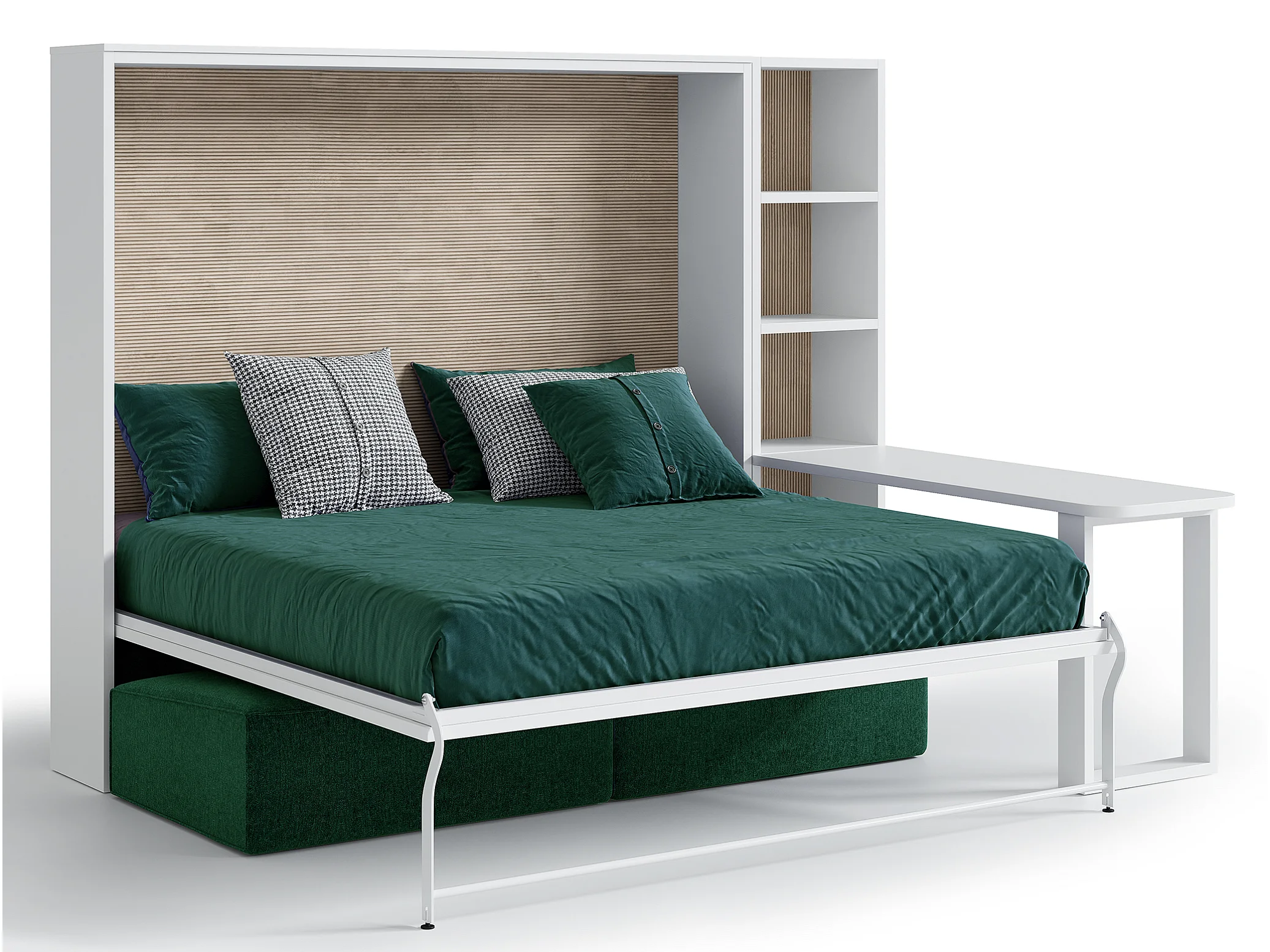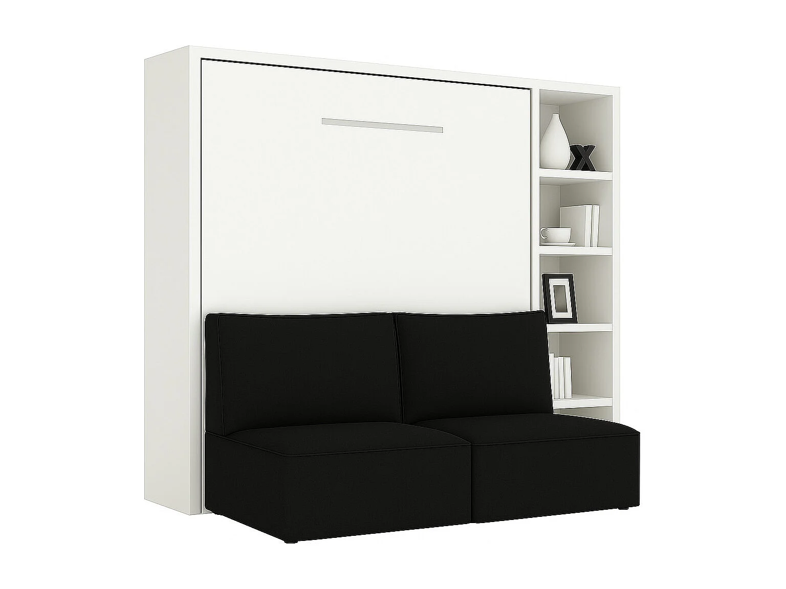 Lit escamotable horizontal LOGIA-140x190-Canapé Noir-Structure Blanche-Version lit+canapé+étagère
